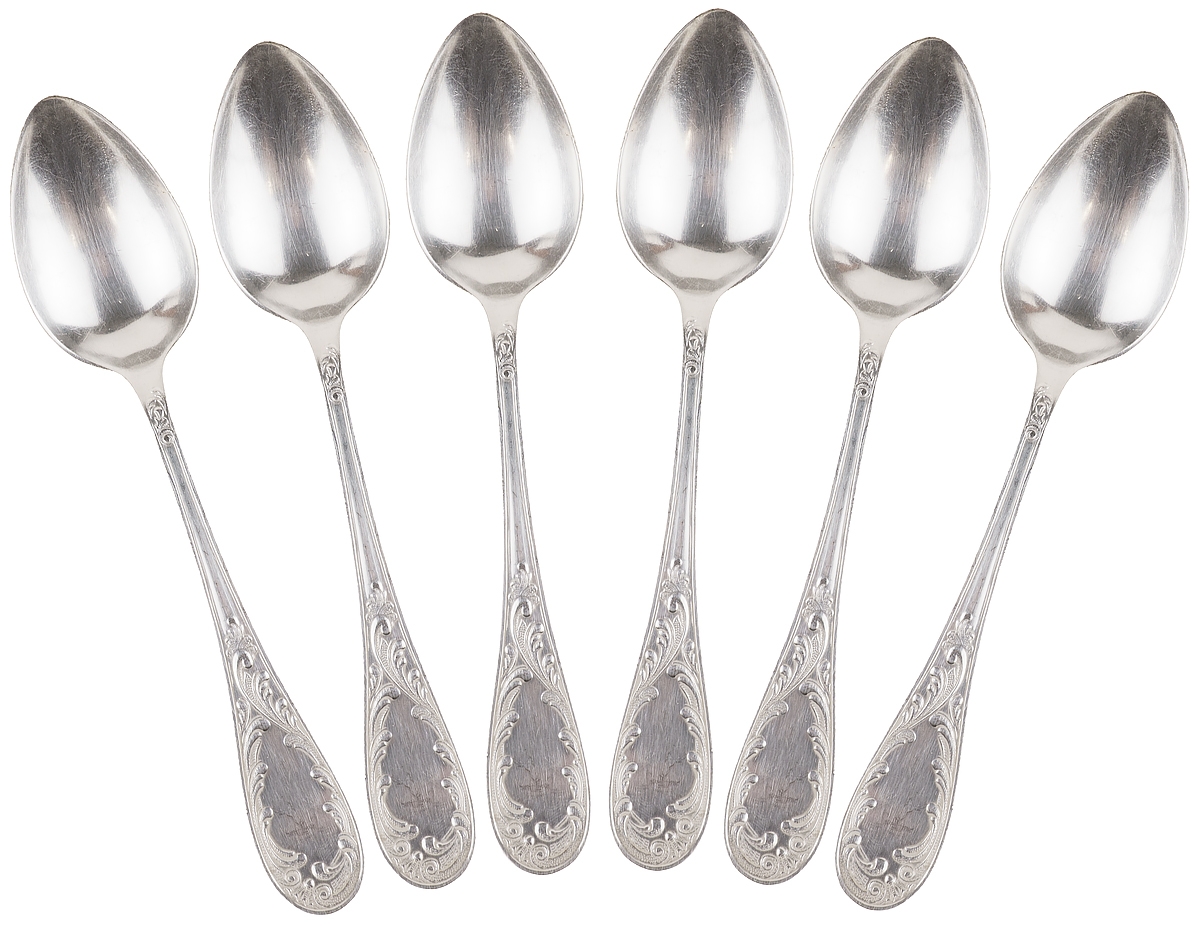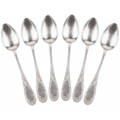 Набор из 6 столовых ложек, мельхиор, МНЦ, Кольчугинский завод цветных металлов, СССР, 1970 гг (потертость покрытия)