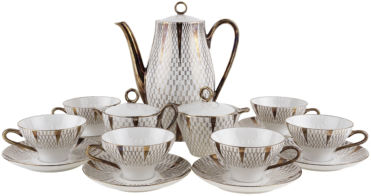 Стильный винтажный кофейный сервиз для эспрессо и ристретто "Королевское золото" на 6 персон, 15 предметов.