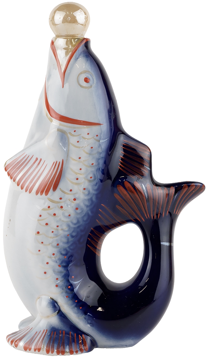 Графин "Рыбы", штоф для водки синий, Фарфор, винтаж, СССР, Полонное ЗХК, вторая половина 20 века