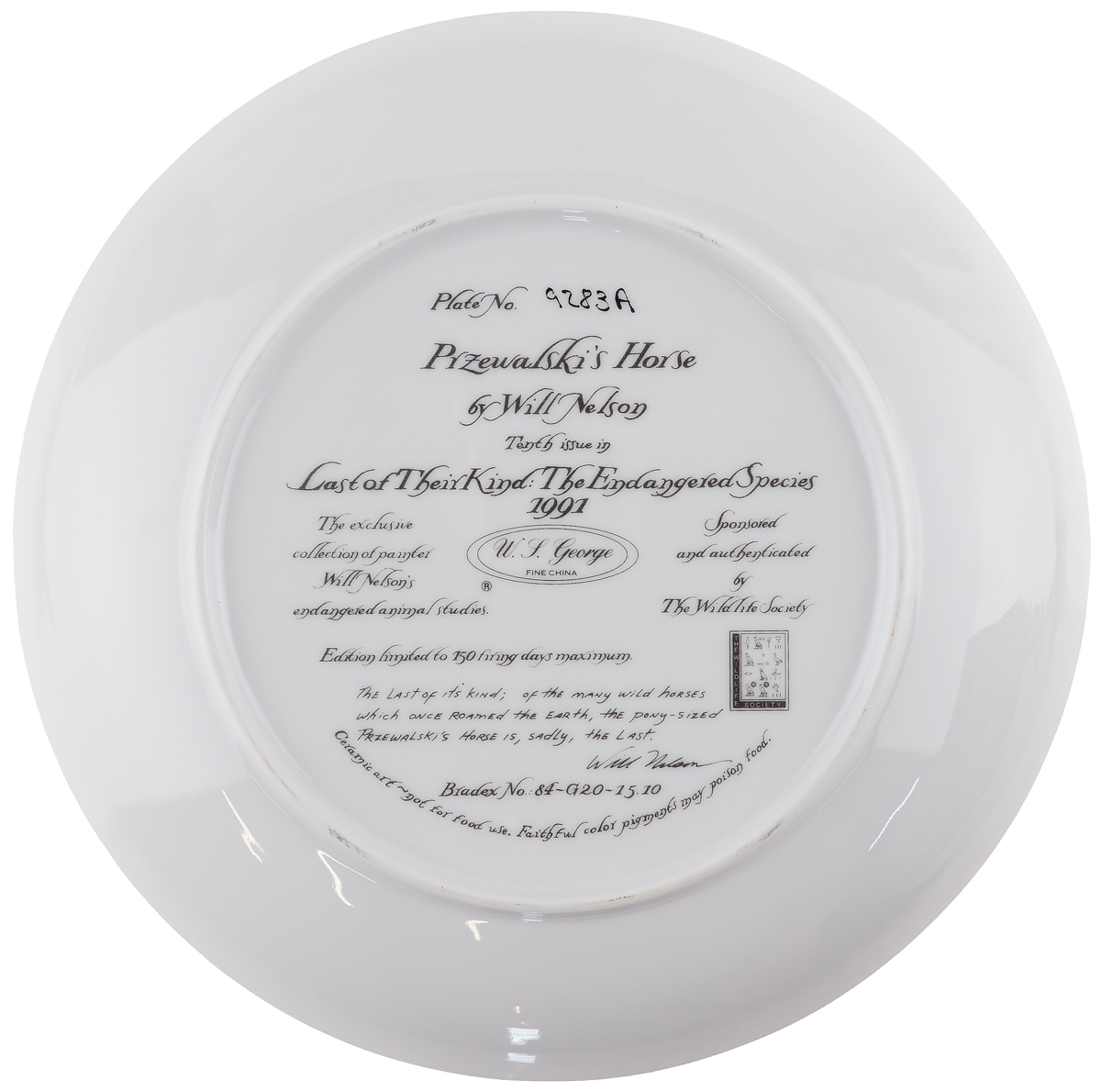 Декоративная тарелка настенная "Лошадь Пржевальского", фарфор, винтаж, WS George, США, 1991 год