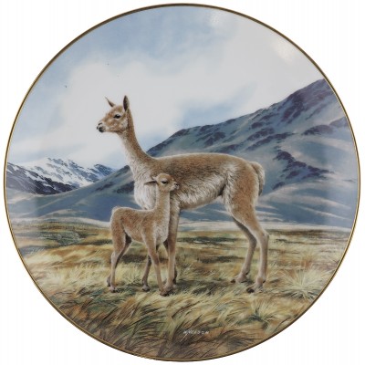 Винтажная декоративная тарелка настенная "Лама". Выполнена по рисункам художника Уилла Нельсона. Серия "Мир семьи в дикой природе".