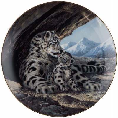Винтажная декоративная тарелка настенная "Снежный леопард". Выполнена по рисункам художника Уилла Нельсона. Серия "Мир семьи в дикой природе".