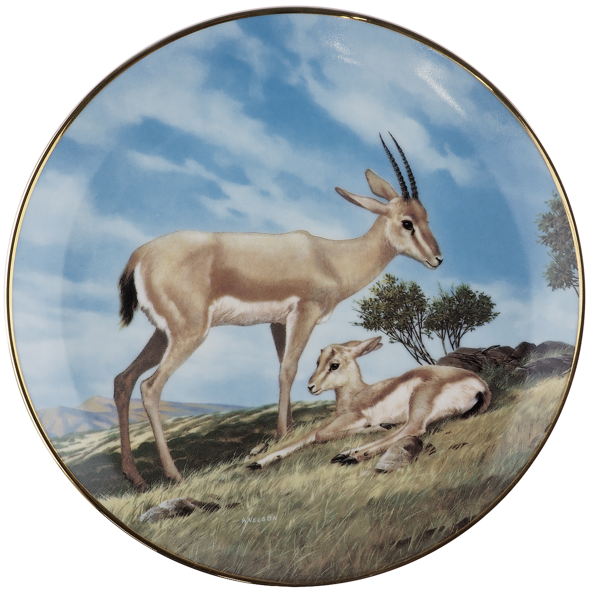 Винтажная декоративная тарелка настенная "Газель". Выполнена по рисункам художника Уилла Нельсона. Серия "Мир семьи в дикой природе".