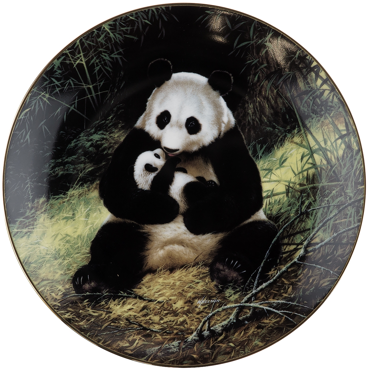 Винтажная декоративная тарелка настенная "Панда". Выполнена по рисункам художника Уилла Нельсона. Серия "Мир семьи в дикой природе".