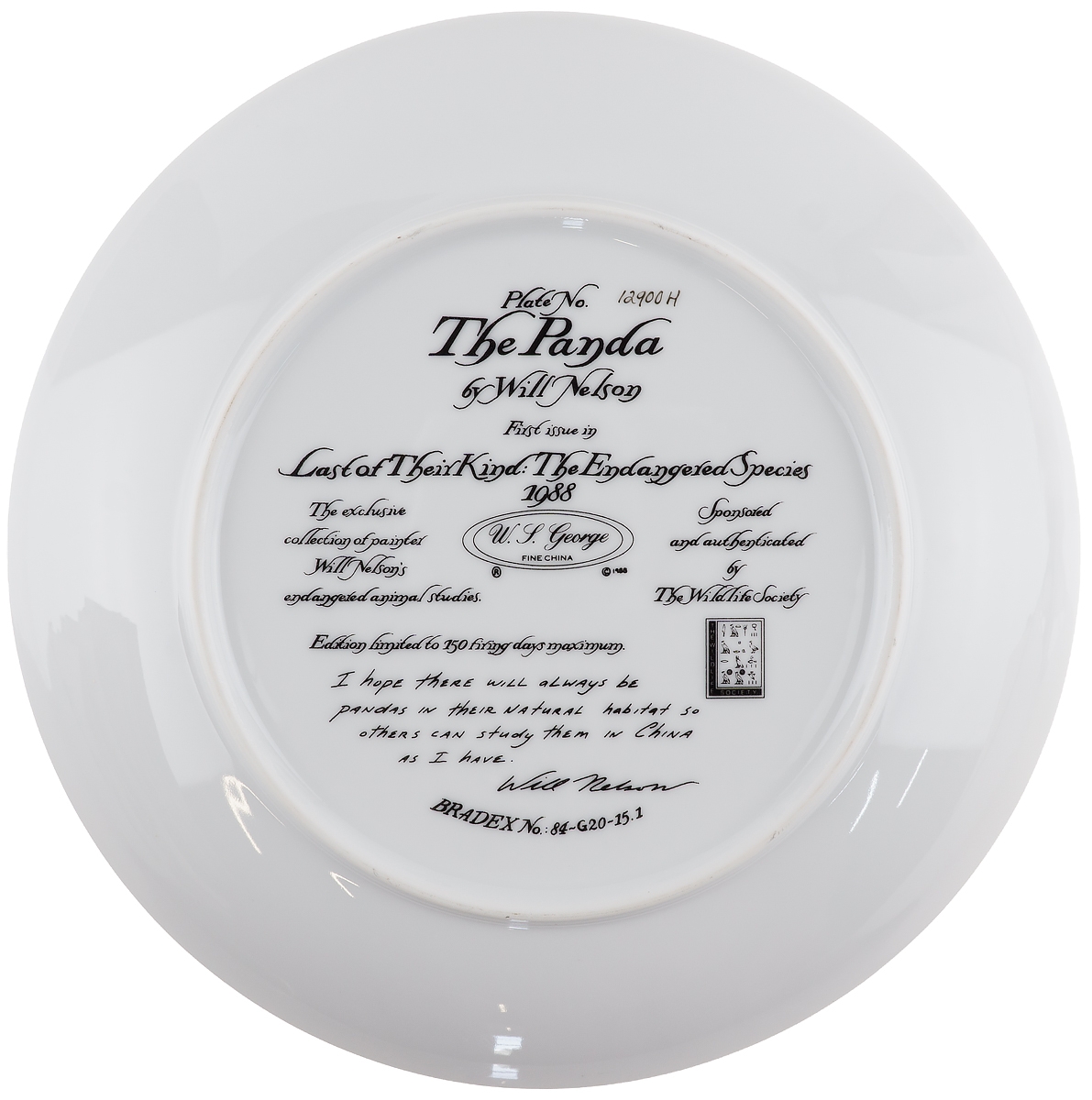 Декоративная тарелка настенная "Панда", фарфор, винтаж, WS George, США, 1991 год