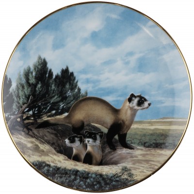 Винтажная декоративная тарелка настенная "Хорек". Выполнена по рисункам художника Уилла Нельсона. Серия "Мир семьи в дикой природе".