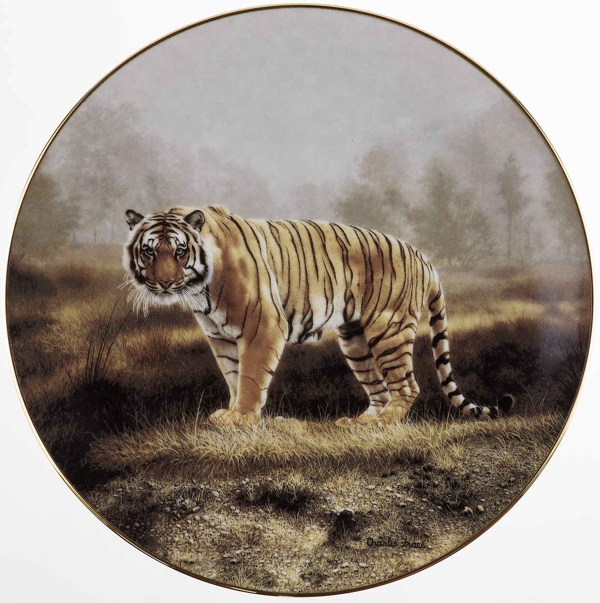Винтажная декоративная тарелка настенная "Королевский бенгальский тигр". Выполнена по рисункам художника Чарльза Фрейса (Charles Frace). Серия "Самые великолепные дикие кошки".