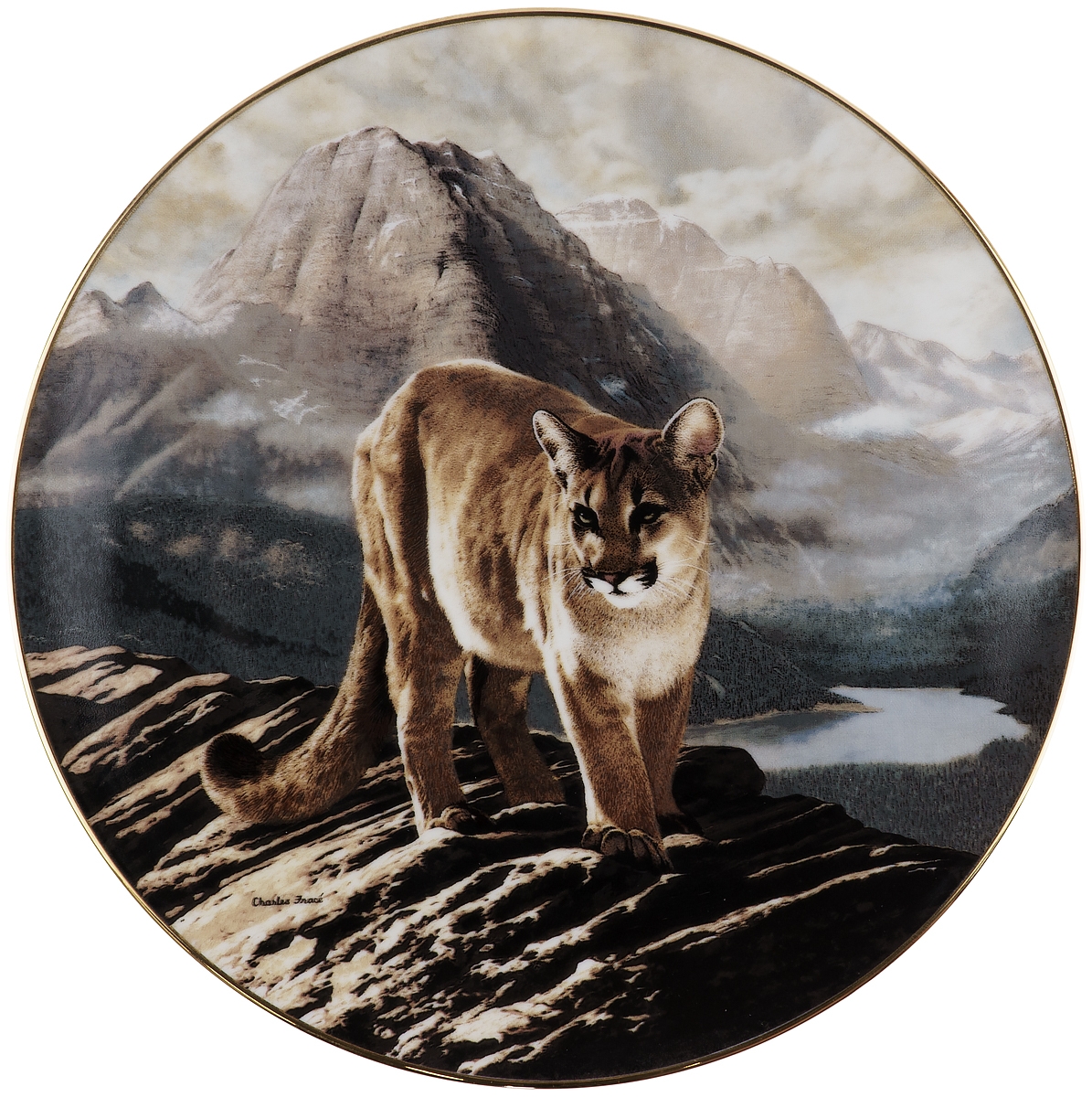 Винтажная декоративная тарелка настенная "Пума". Выполнена по рисункам художника Чарльза Фрейса (Charles Frace). Серия "Самые великолепные дикие кошки".