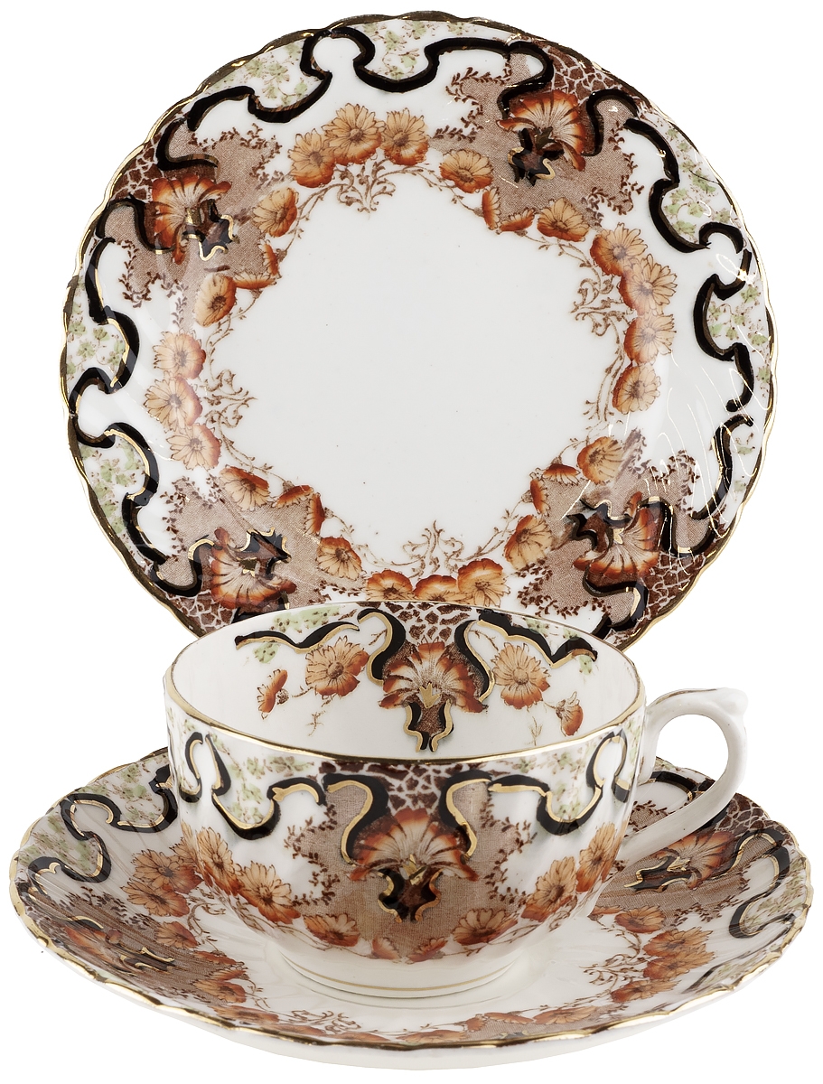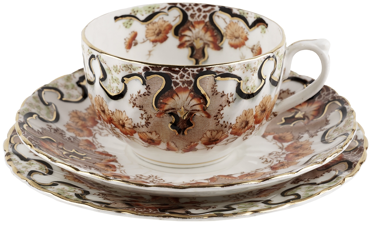 Чайное трио антикварное "Осенние цветы имари". Фарфор, Великобритания, конец 19 века
