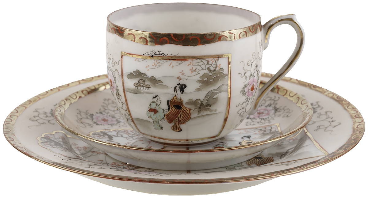 Чайное трио "Ориенталь". Фарфор, ручная роспись. Япония, винтаж, середина 20 века (нюанс)