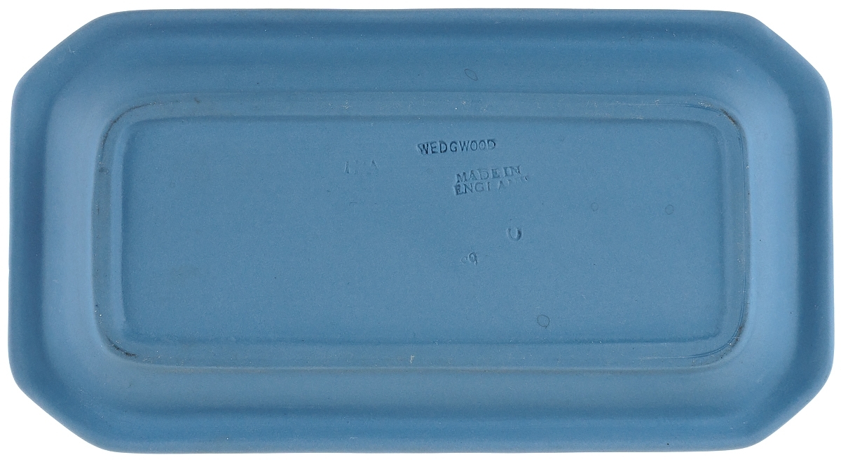 Прямоугольная тарелочка для украшений, украшена традиционным для Веджвуд рельефом белого цвета с античным сюжетом.