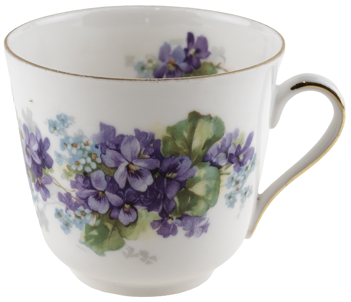 Чайная чашка "Фиалки". Фарфор. Victoria, Чехословакия, антиквариат, первая половина 20 века (трещина)
