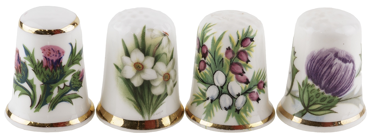 Комплект коллекционных наперстков "Цветы", 4 шт. Фарфор, Великобритания, вторая половина 20 века