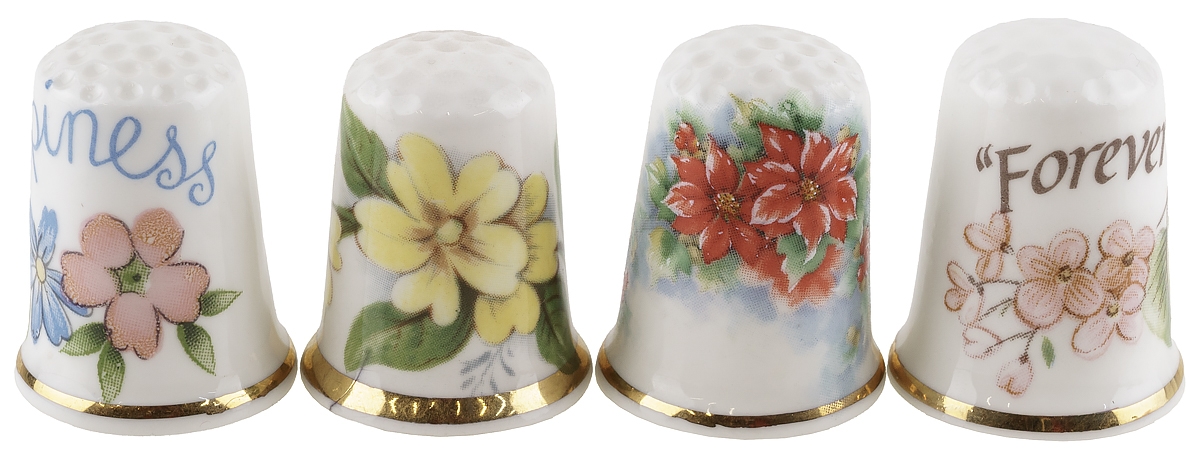 Комплект коллекционных наперстков "Цветы", 4 шт. Фарфор, Великобритания, вторая половина 20 века