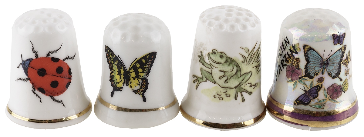 Комплект коллекционных наперстков "Бабочки, жук и лягушка", 4 шт. Фарфор, Великобритания, вторая половина 20 века