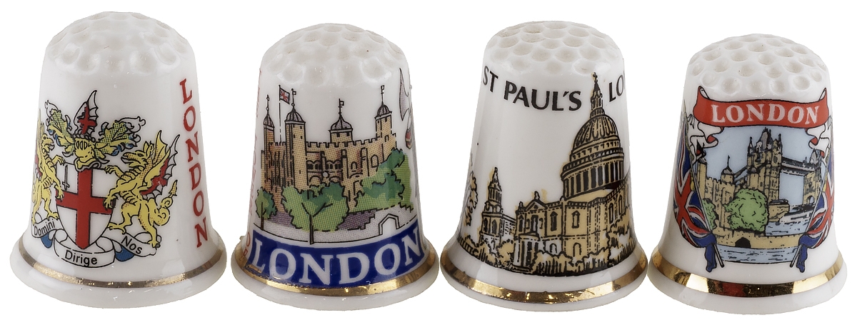 Комплект коллекционных наперстков "Лондон", 4 шт. Фарфор, Великобритания, вторая половина 20 века