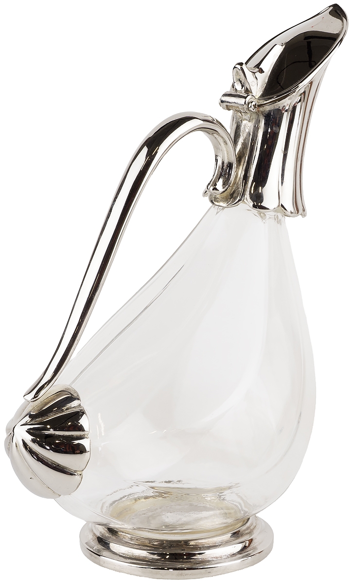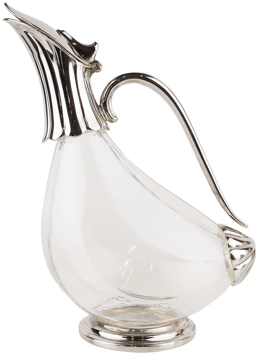 Кувшин для вина или воды "Утка", 1 литр. Стекло, металл, серебрение. Западная Европа, 1970-е гг.