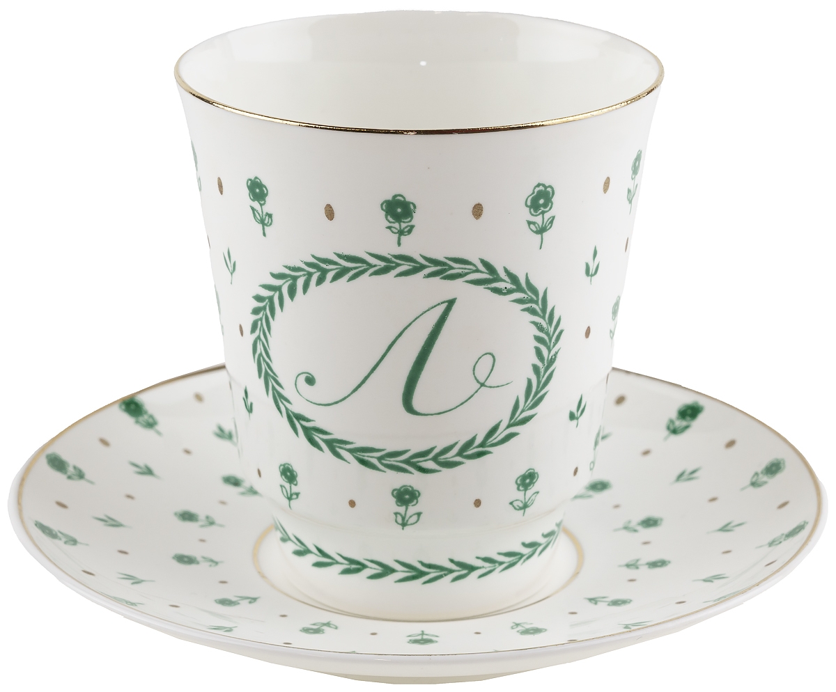 Очаровательная коллекционная чайная пара "Буква Л" из тонкого костяного фарфора. Чашка небольшого объема подойдет для чая или кофе.