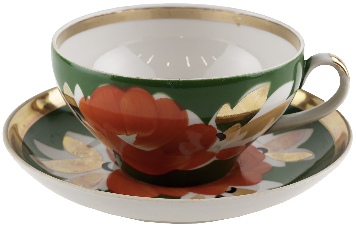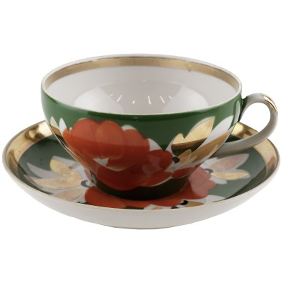 Чайная пара "Алая роза", фарфор, винтаж, Дулево, СССР, вторая половина 20 века