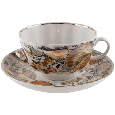 Чайная пара "Золотая осень", Фарфор, винтаж, ЛФЗ, СССР, 1970-1986 гг.