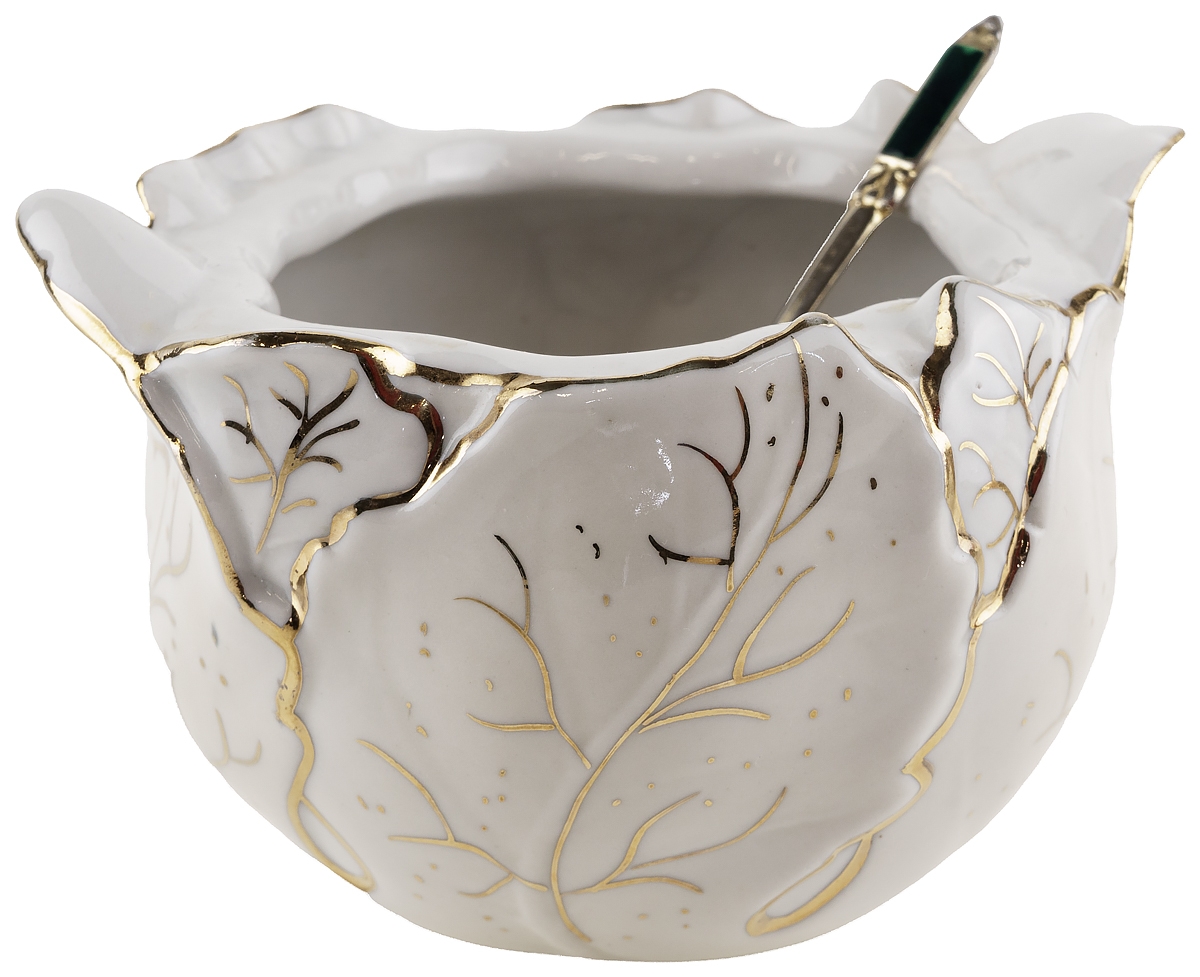 Сахарница "Капустные листья", фарфор, винтаж, Россия, начало 21 века