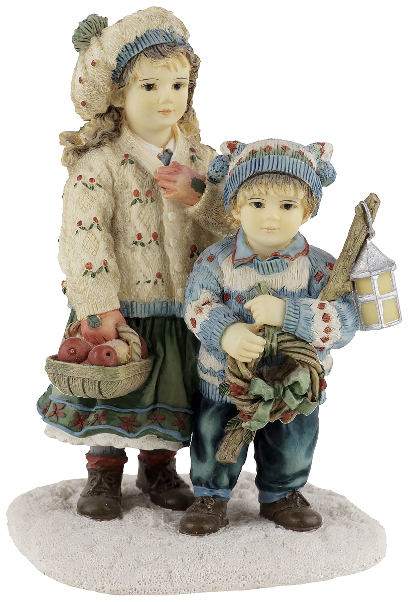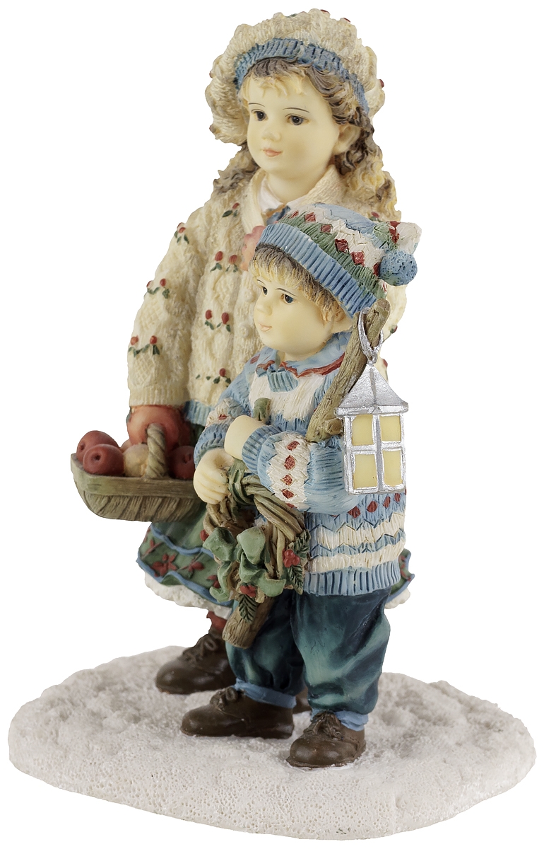 Статуэтка "Дети на снегу" (Подарки к Рождеству), высота 11,5 см, композитный материал, Leonardo collection, Великобритания, винтаж, конец 20 века