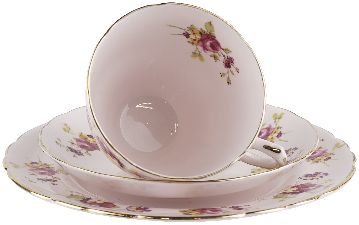 Чайное трио "Летний букет". Фарфор. Tuscan, Великобритания, винтаж, середина 20 века (с нюансом)