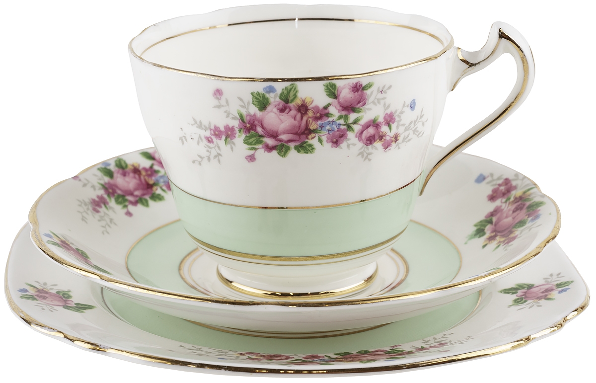 Чайное трио "Нежность". Английский фарфор. Royal Crown Pottery, Великобритания, винтаж, вторая половина 20 века (нюанс)