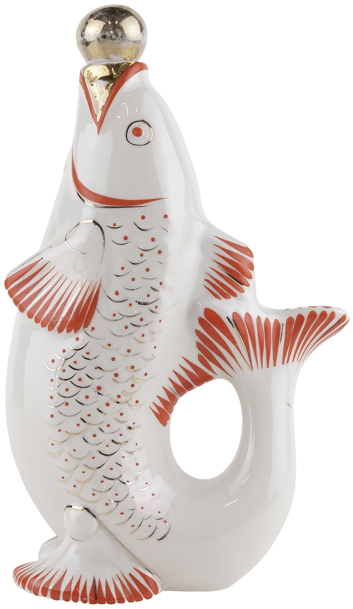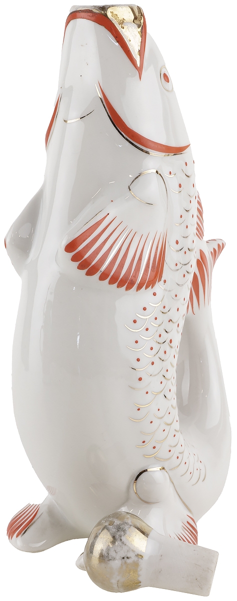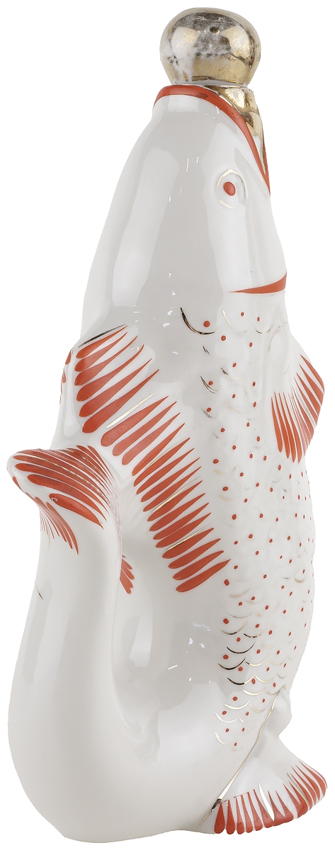 Графин - штоф и 6 стопок "Рыбы", для водки белый. Фарфор, СССР, Полонное ЗХК, вторая половина 20 века (потертости)