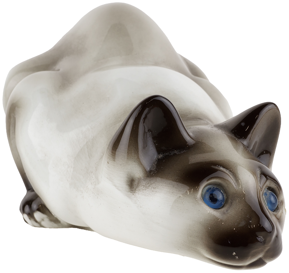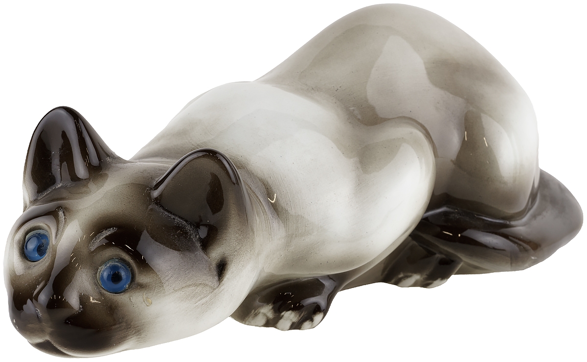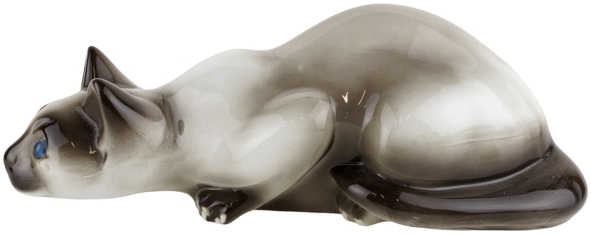 Статуэтка "Сиамский кот" большого размера, Фарфор, Высота 12,5 см, Alcoba, Португалия, конец 20 века