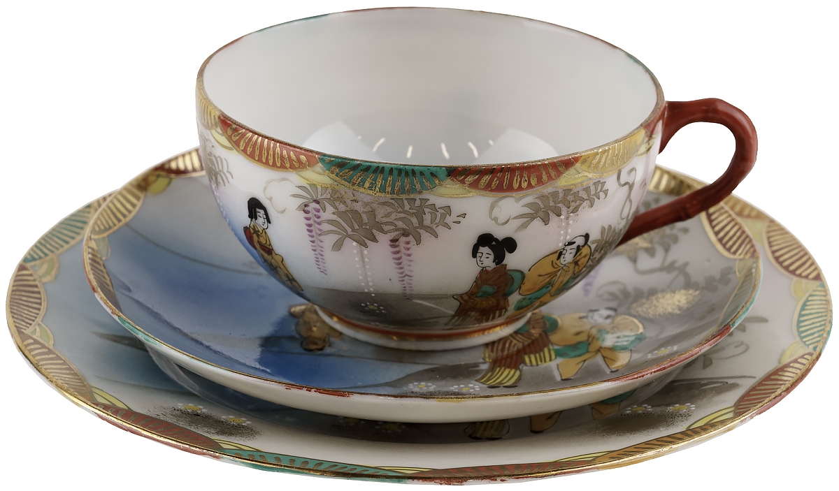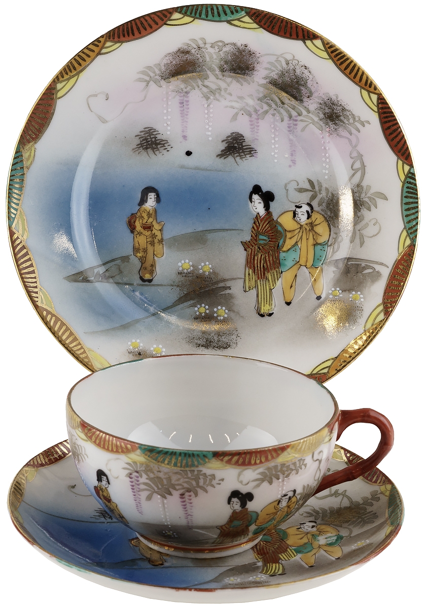 Чайное трио "В саду глициний", фарфор. Япония, винтаж, середина 20 века