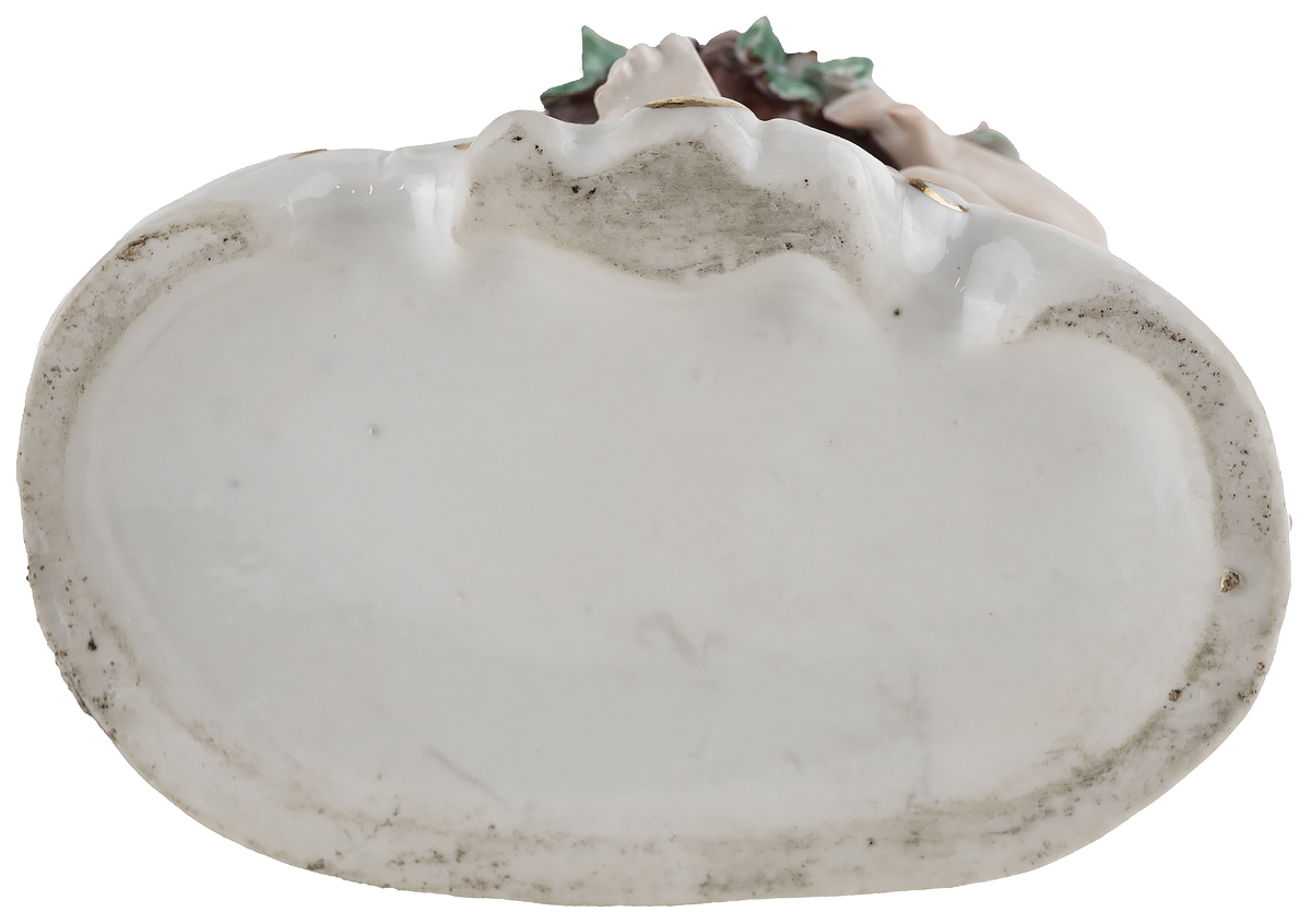 Старинная антикварная статуэтка "Путти с корзиной цветов". Очень качественная имитация изделия фабрики Челси второй половина 18 века. Предположительно изготовлено на мануфактуре Samson.