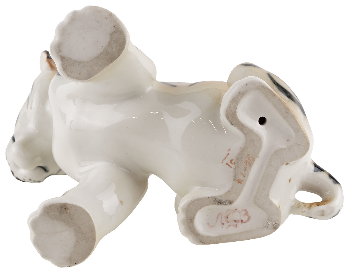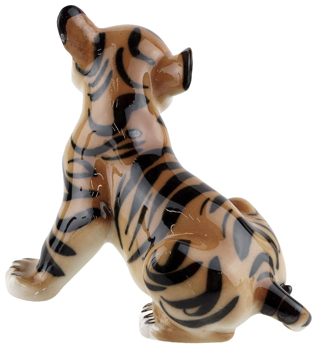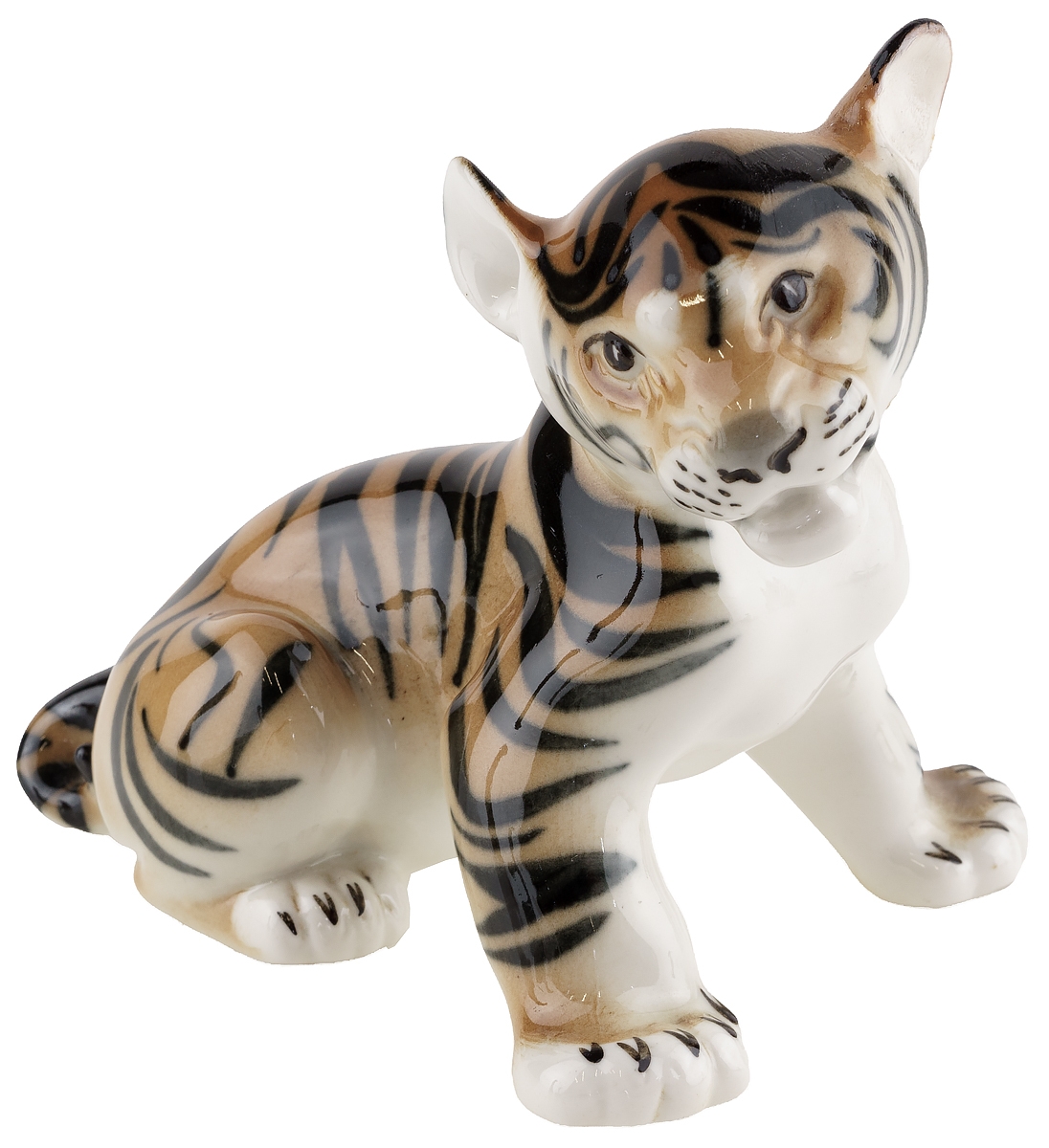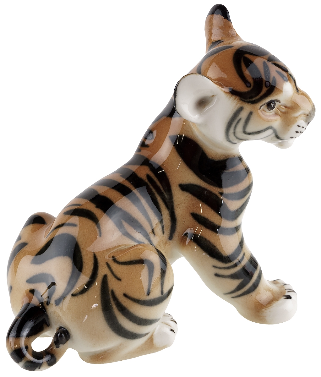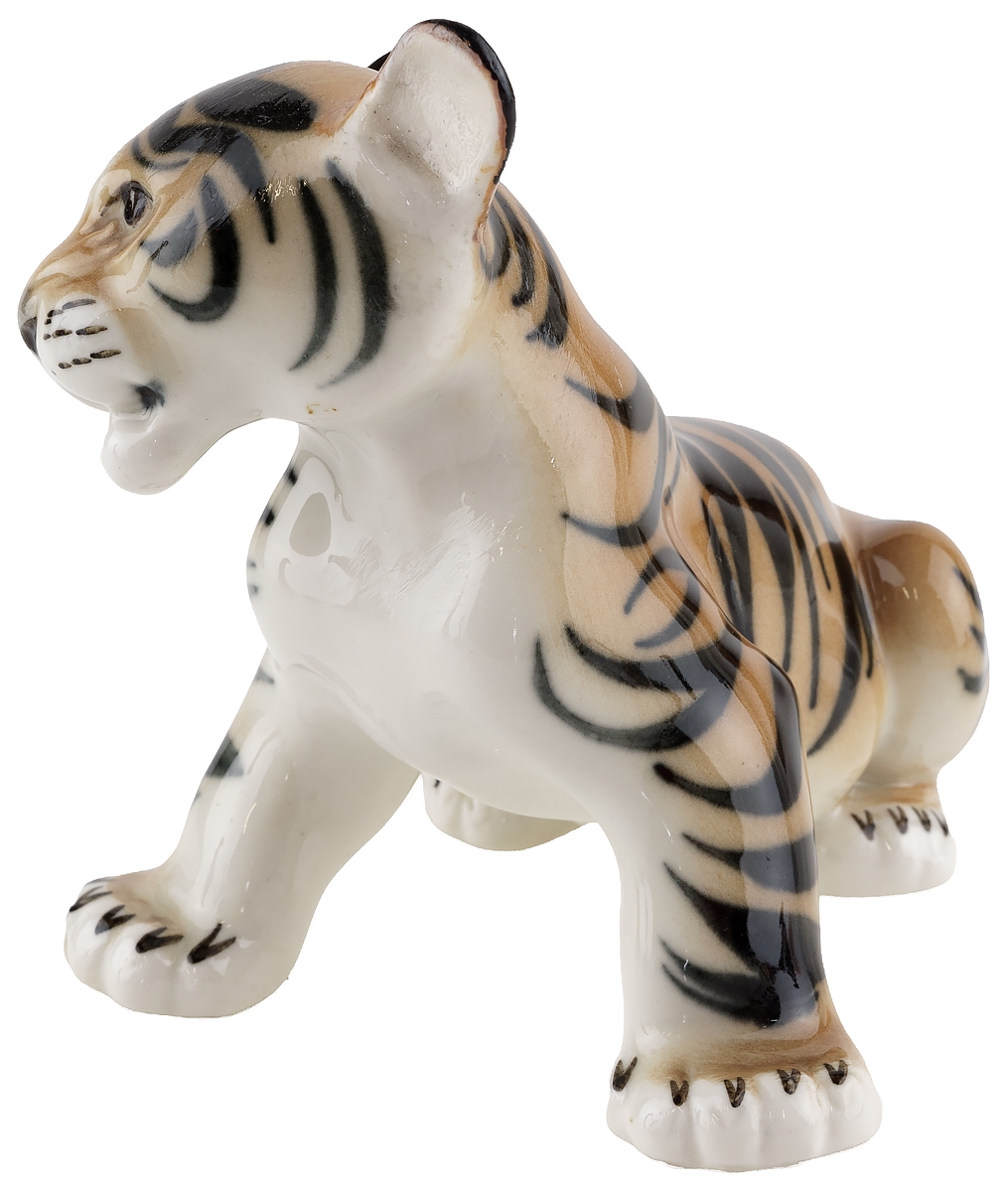 Статуэтка фарфоровая "Тигренок", винтаж, высота 12,5 см, ЛФЗ, СССР, вторая половина 20 века (реставрация)