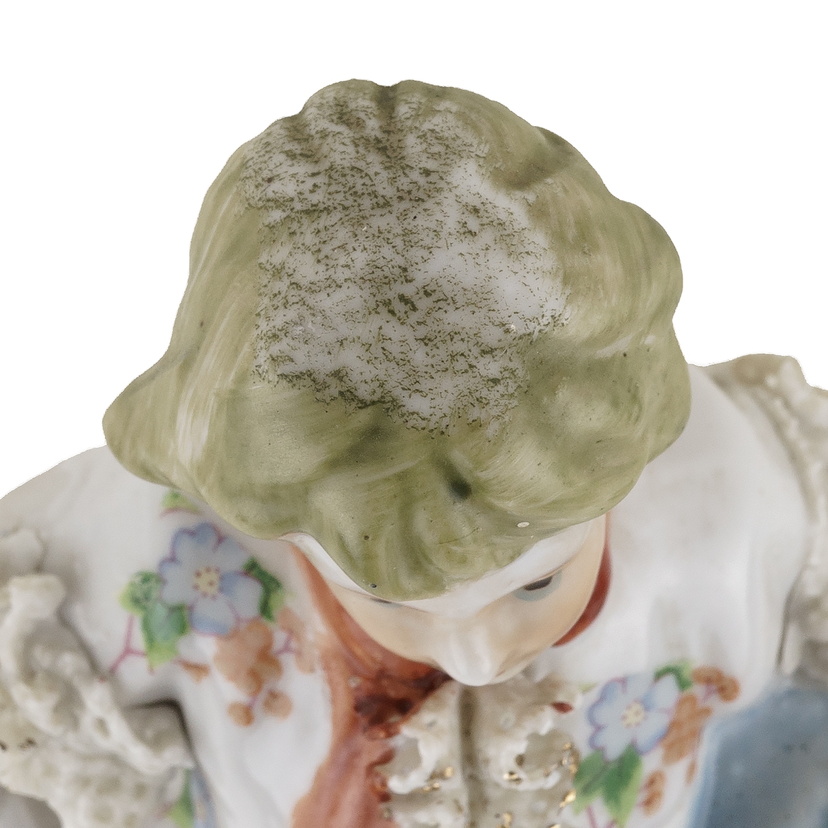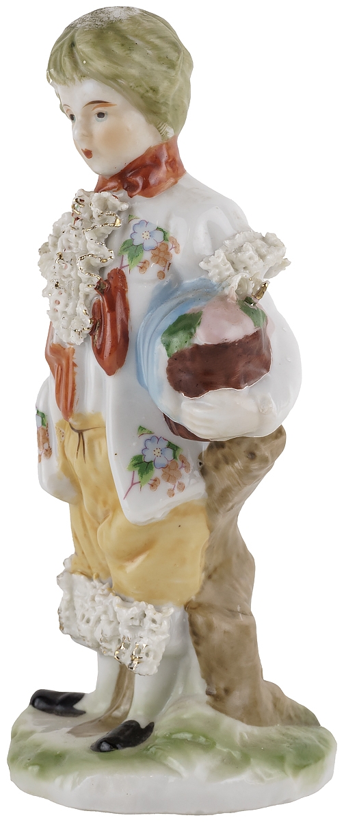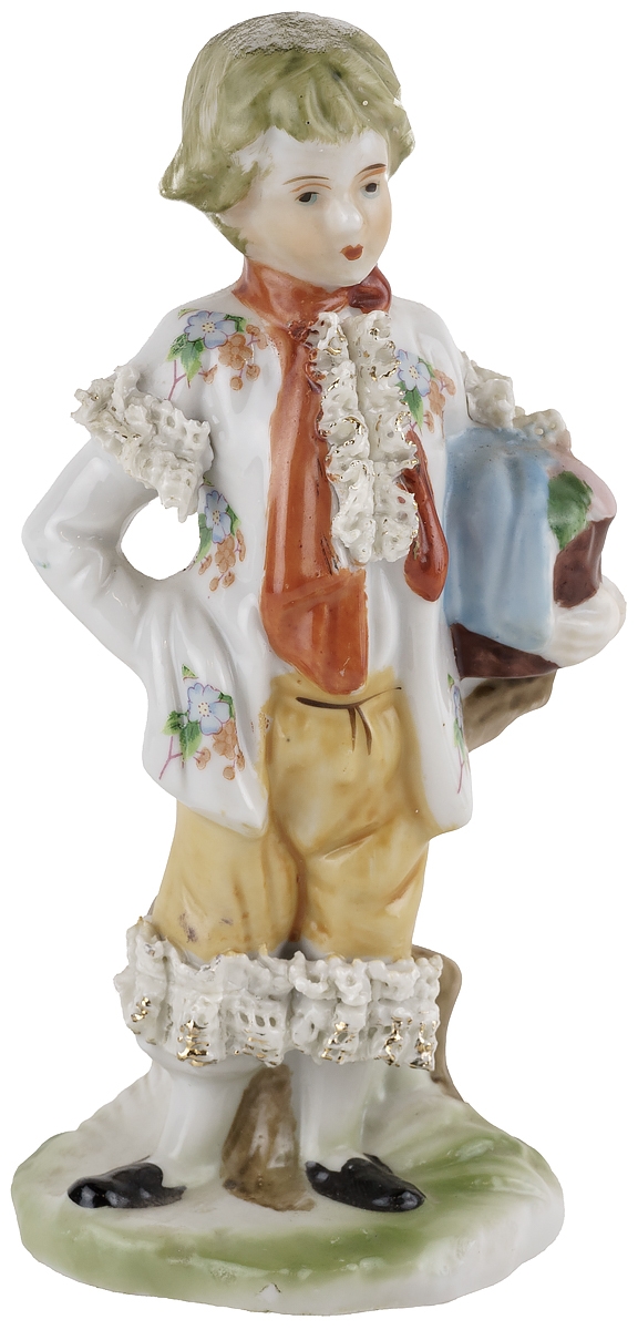 Статуэтка "Юноша с корзиной". Высота 17 см, фарфор, Германия, винтаж, середина 20 века