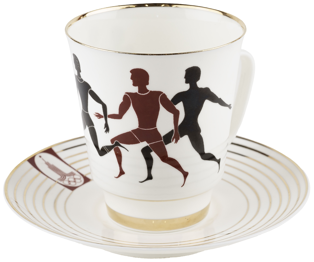 Чайная пара "Олимпиада 80. Эстафета". Фарфор, винтаж, ЛФЗ, СССР, вторая половина 20 века