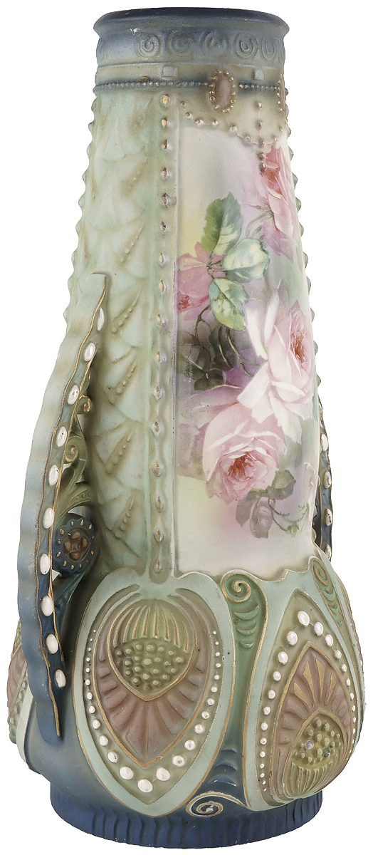 Ваза для цветов антикварная "Экзотика", Высота 31 см, Фарфор, Robert Hanke?, Австрия, начало 20 века (нюанс)