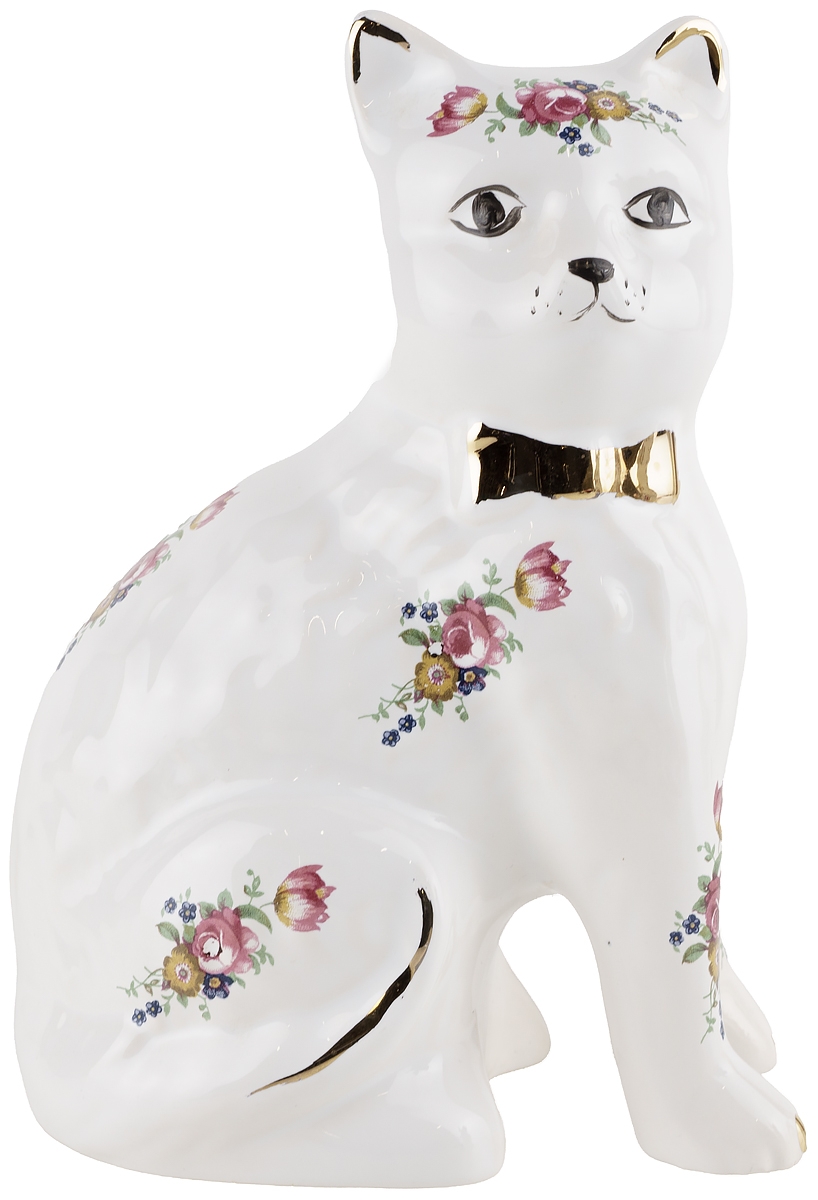 Статуэтка "Кошка с бантом", Высота 17.5 см, Фарфор, Crown Staffordshire, Великобритания, винтаж, вторая половина 20 века