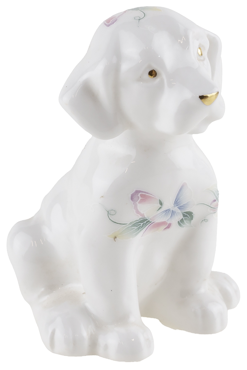 Статуэтка "Щенок" из серии "Little Sweetheart", расписана цветами и бабочками в пастельных тонах.