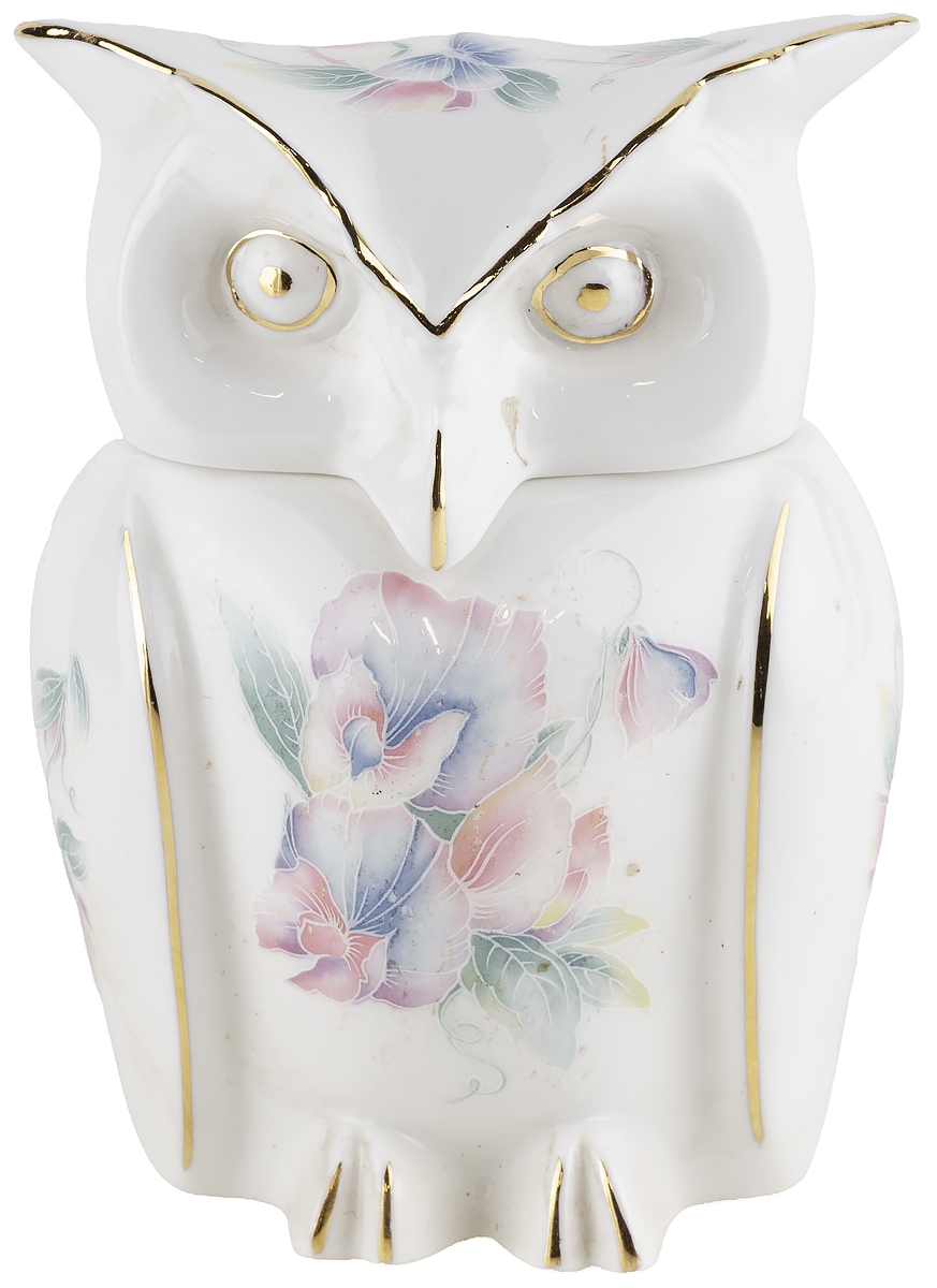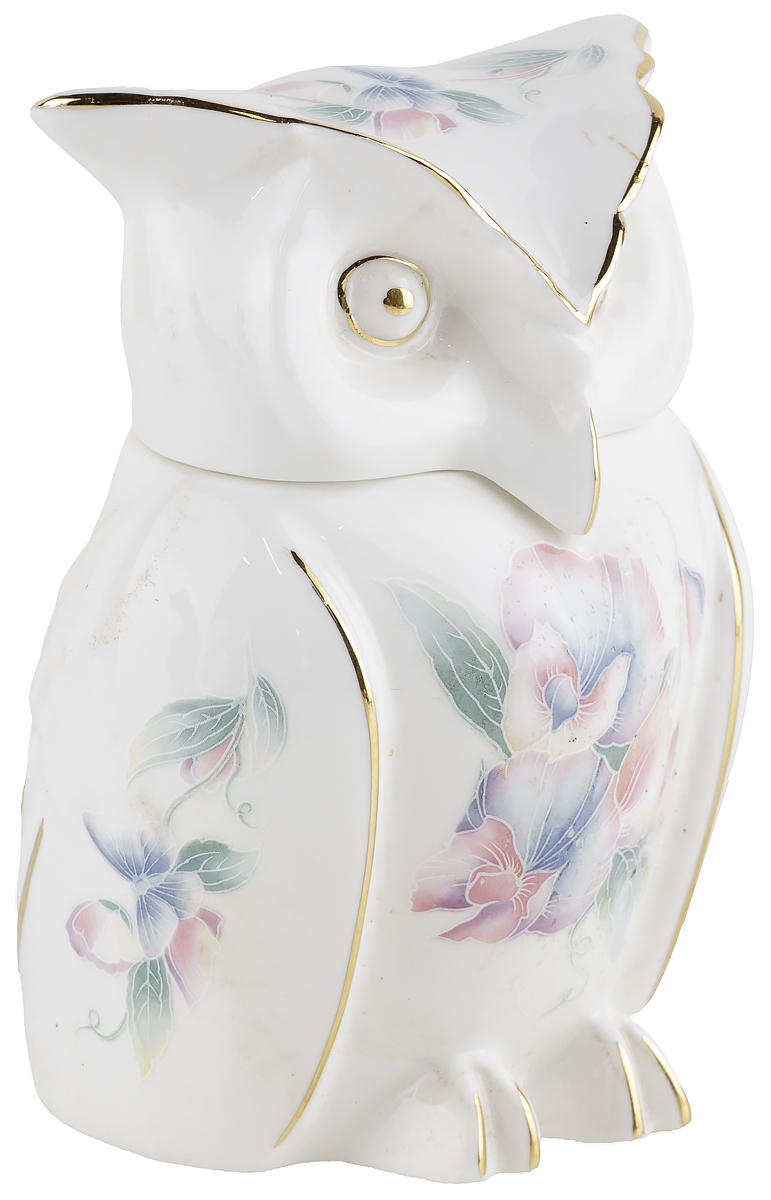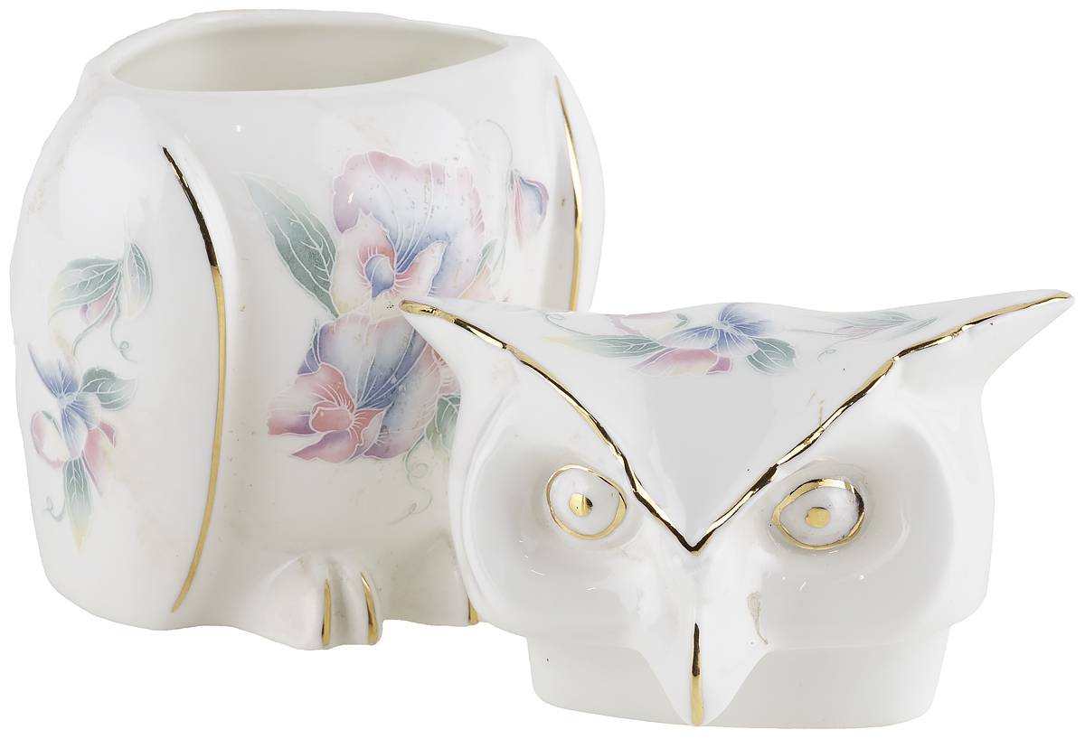 Шкатулка для мелочей "Сова" из серии "Little Sweetheart", расписана цветами и бабочками в пастельных тонах.