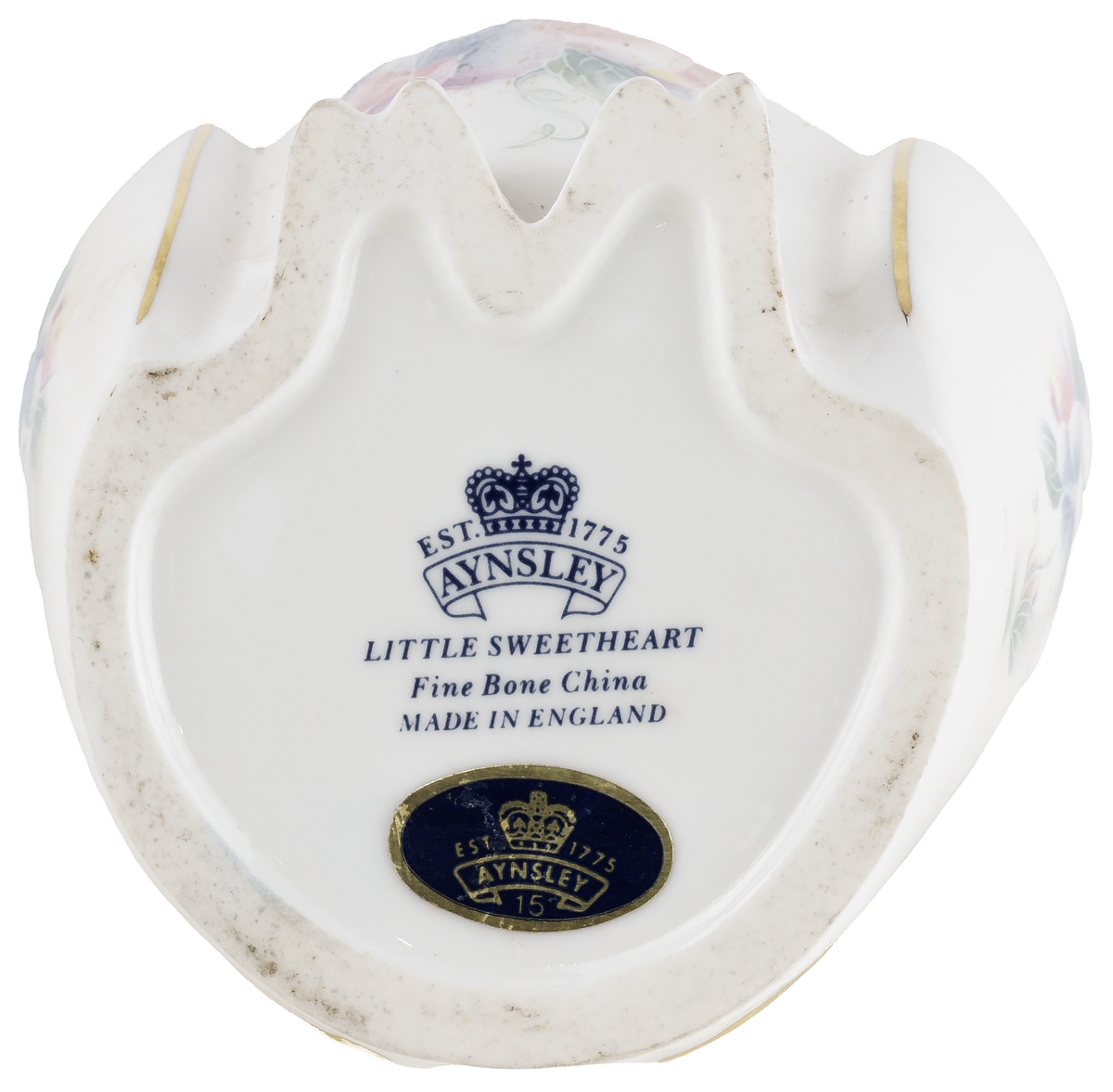 Маркировка: надглазурное клеймо синего цвета "Aynsley. Made in England. Fine Bone China", наклейка на основании.