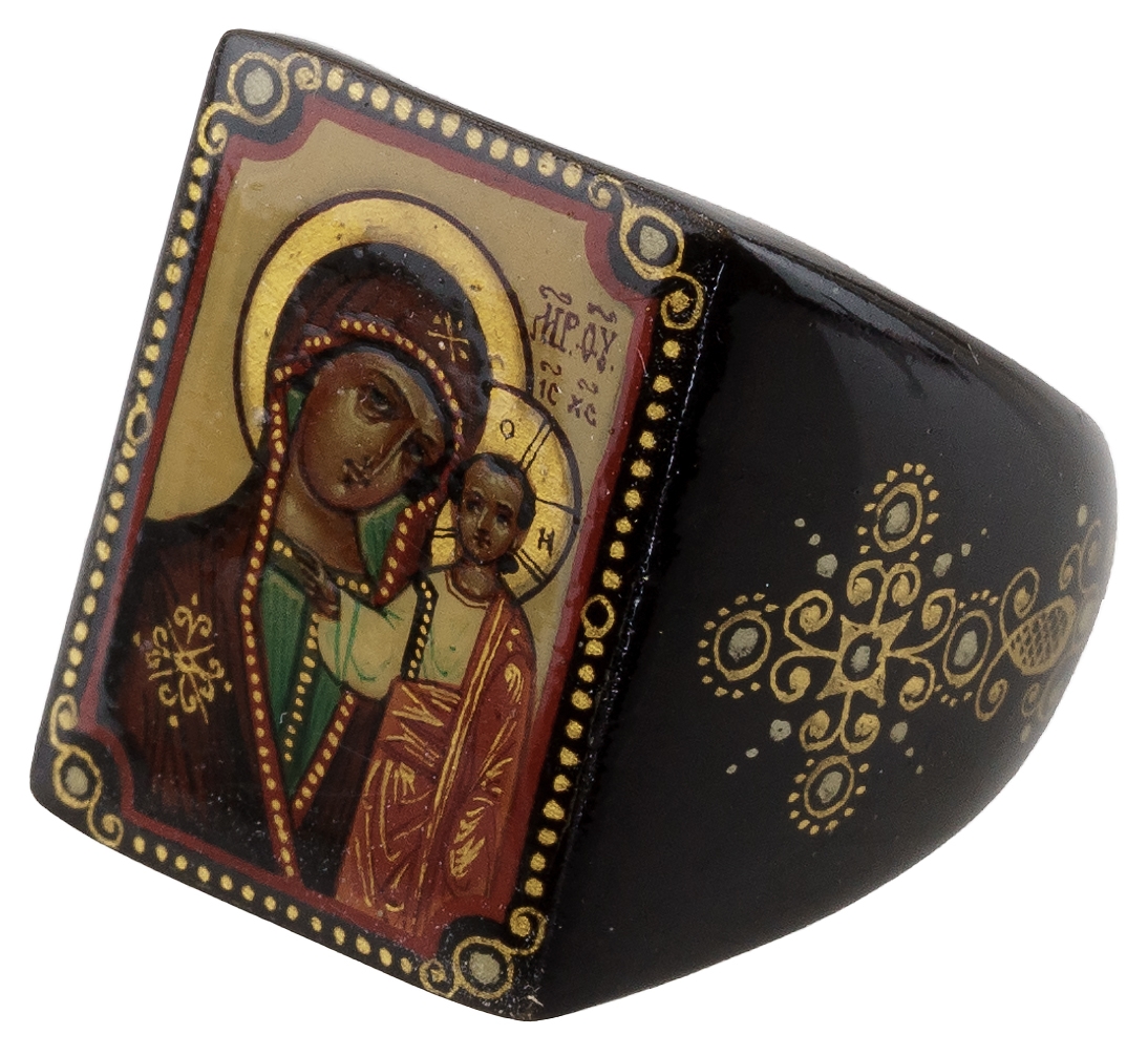 Перстень "Икона Божья Матерь Казанская", папье-маше, Палех, винтаж, 2000-е гг.