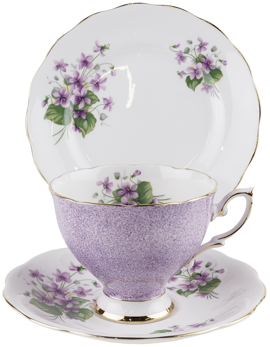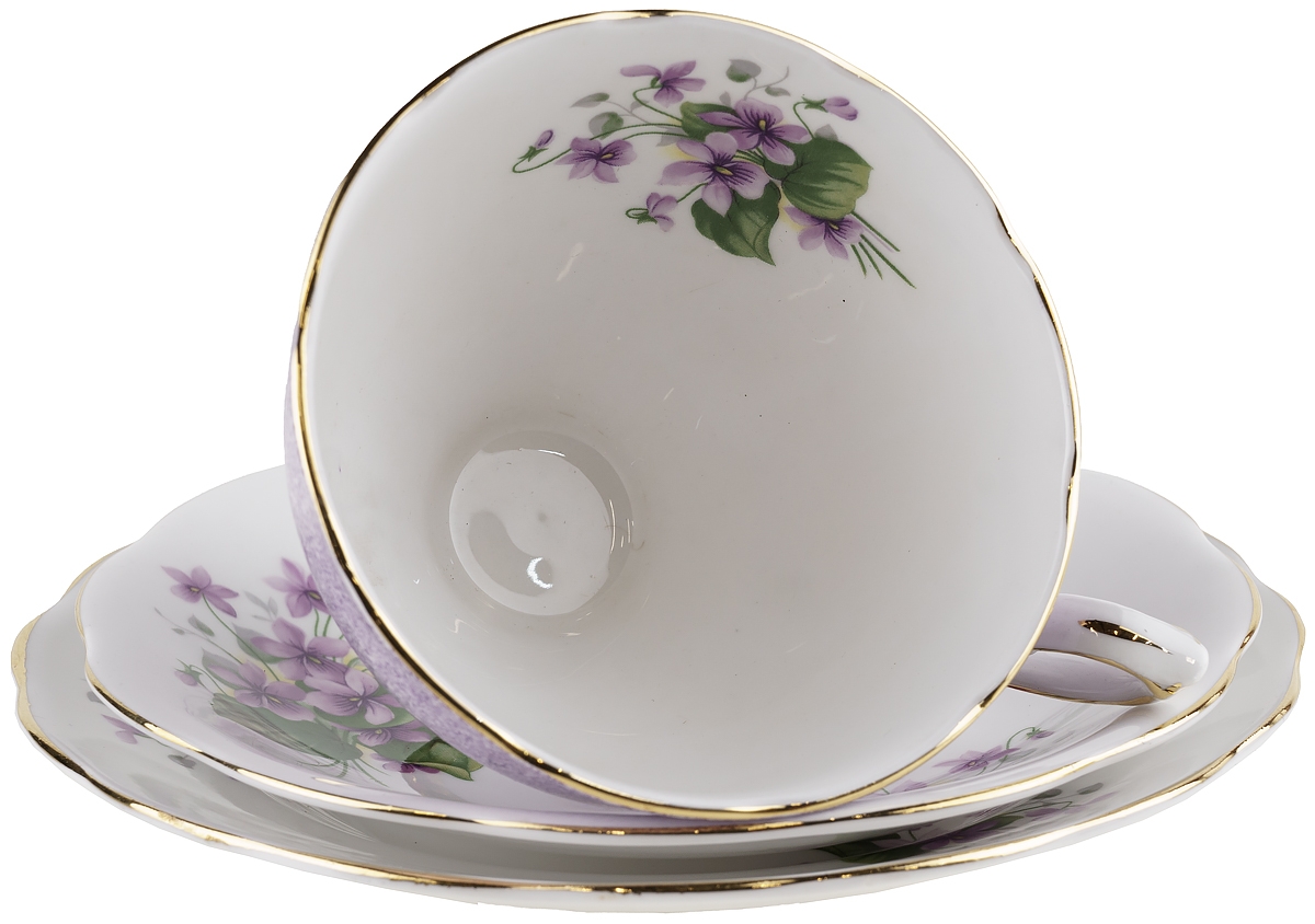 Чайное трио "Фиалки", английский фарфор Royal Standard, Великобритания, винтаж, 1970-е гг.
