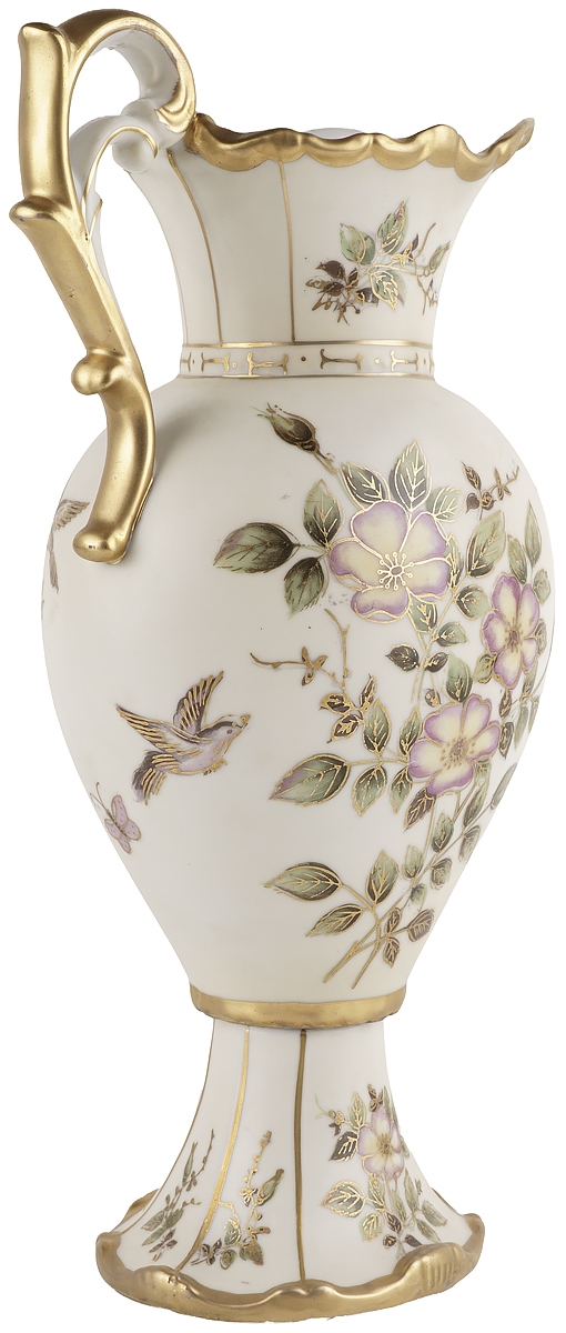 Кувшин, ваза "Шиповник", ручная роспись, фарфор. Высота 32 см. Япония, винтаж, вторая половина 20 века