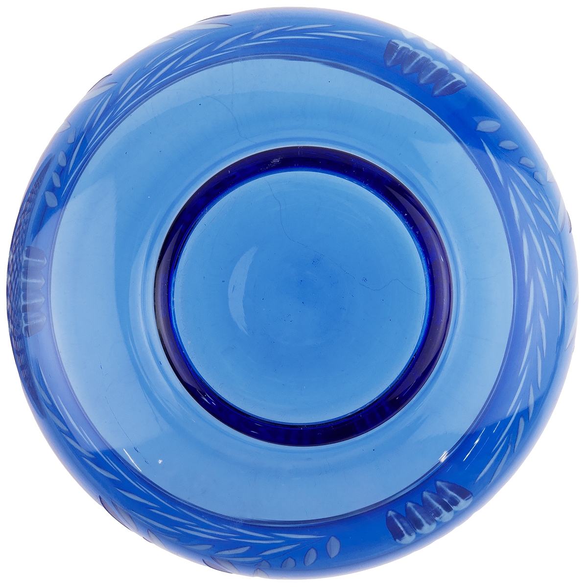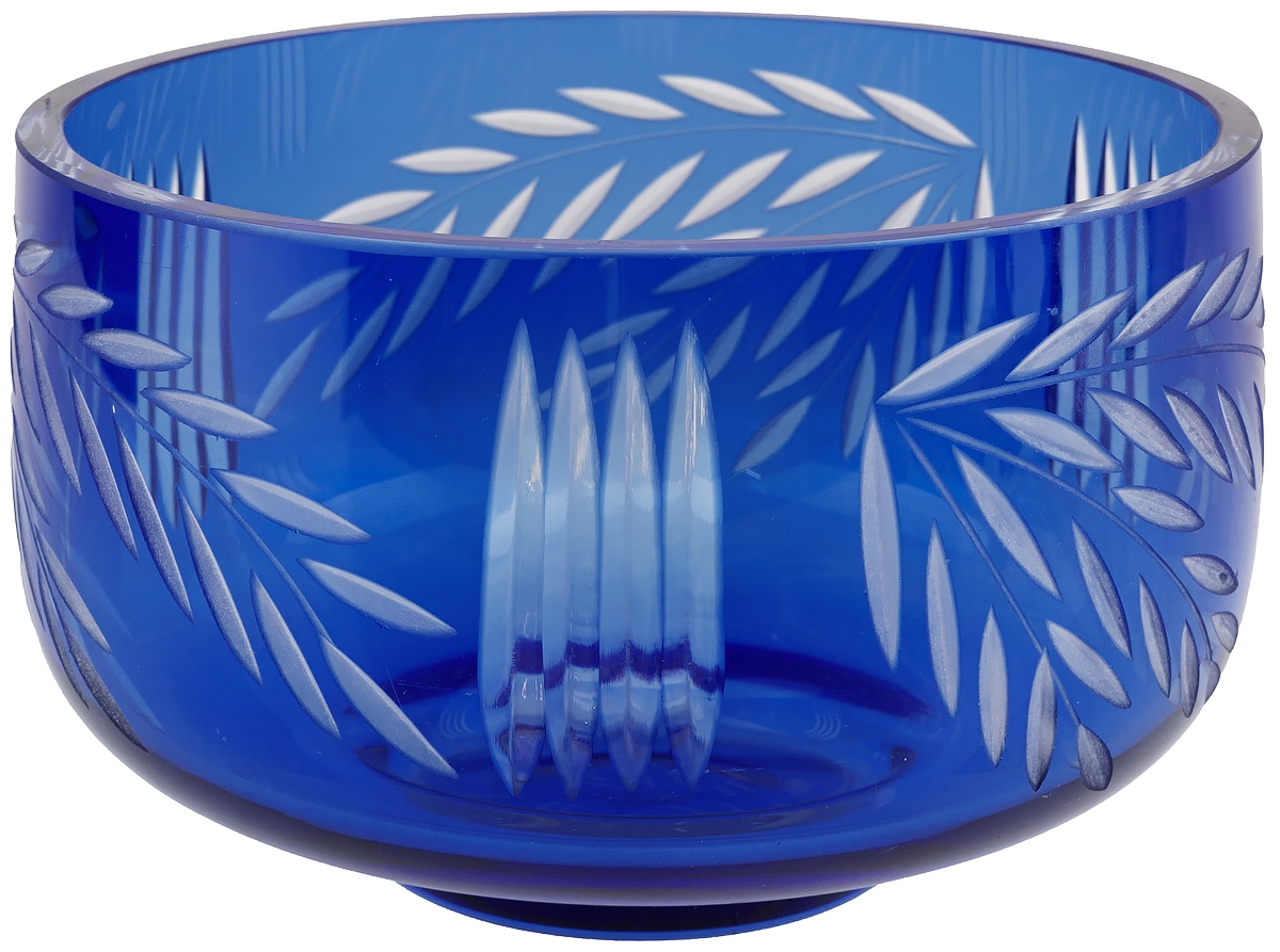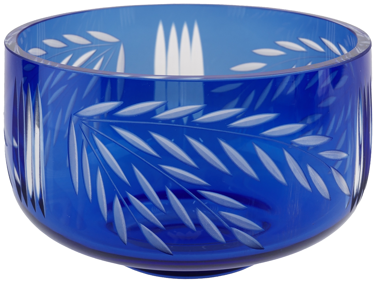 Винтажный салатник из синего стекла, украшенный резными веточками.