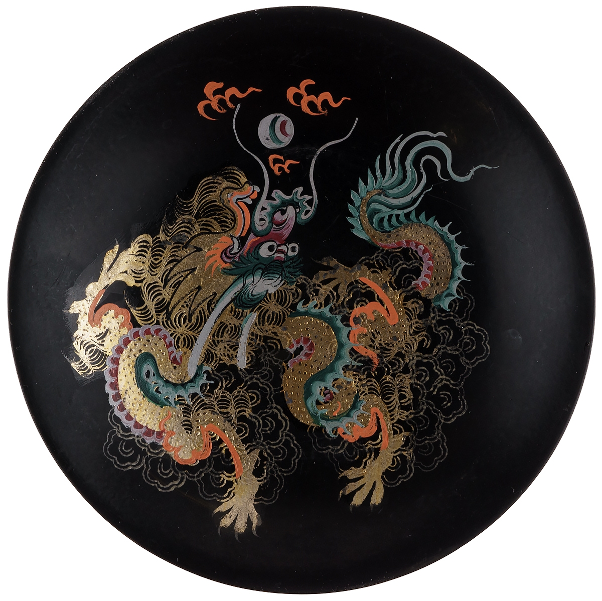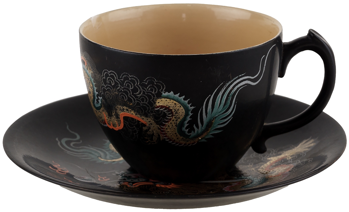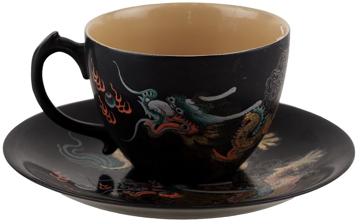Кофейная пара "Золотой дракон", папье-маше, черный лак, Китай, середина 20 века
