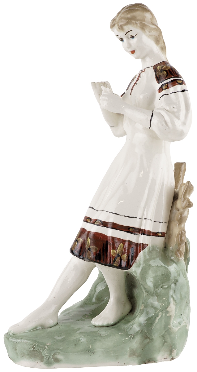 Статуэтка винтажная "Гадание на ромашке". Высота 32 см. Фарфор. Славяновский завод, СССР, 1960-е гг