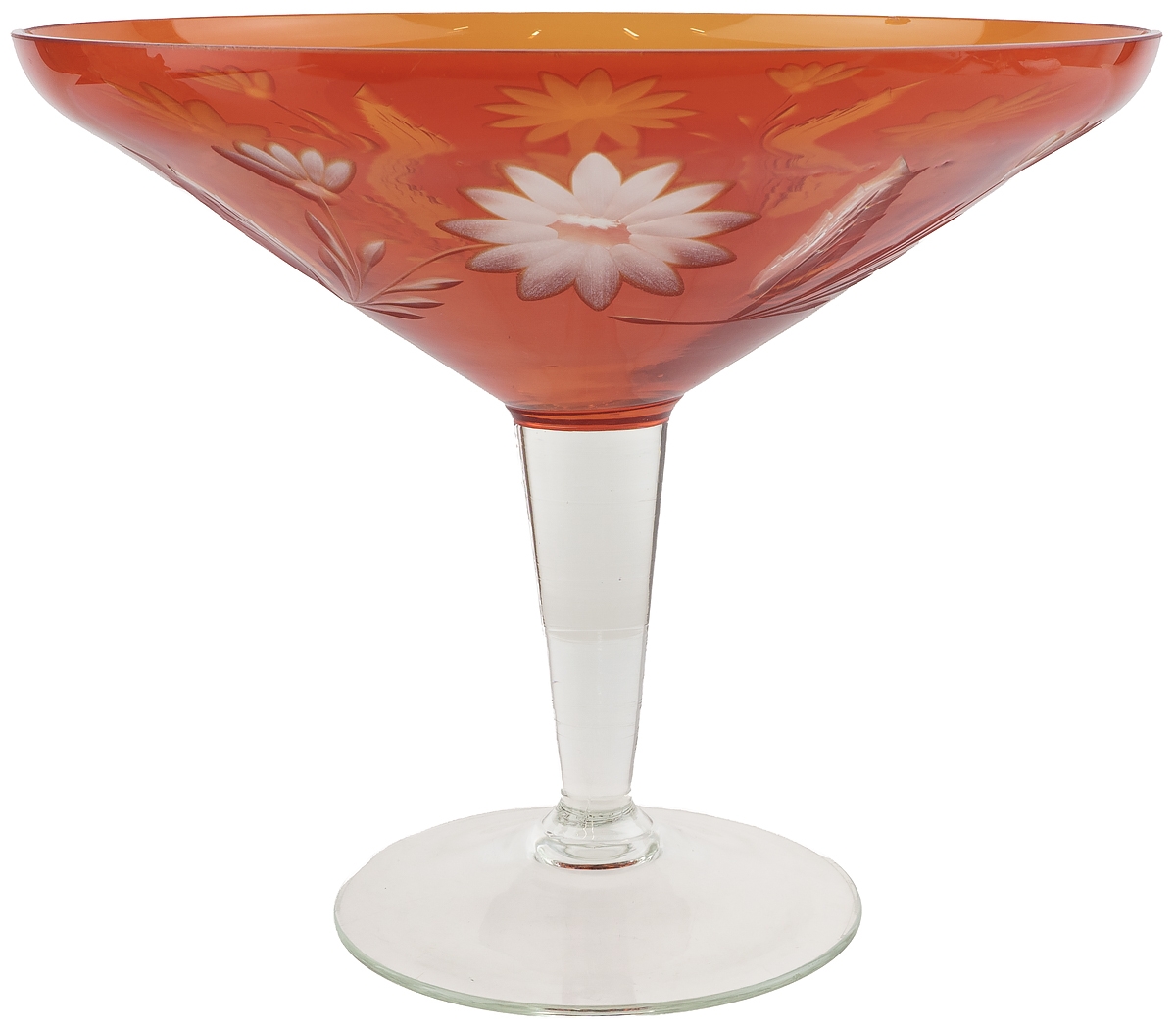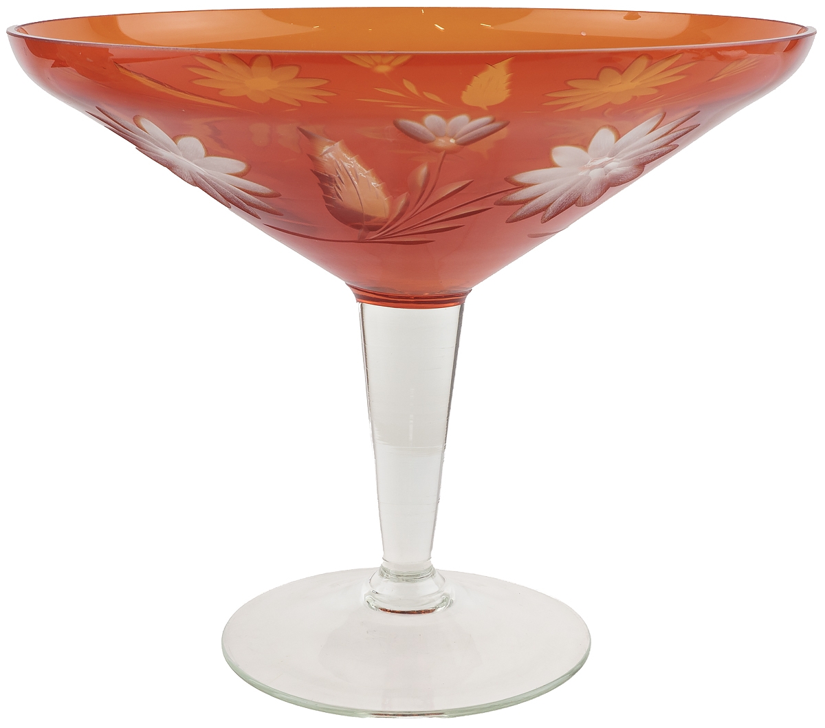 Фруктовница на ножке, красное стекло, винтаж, СССР, 1970-е гг