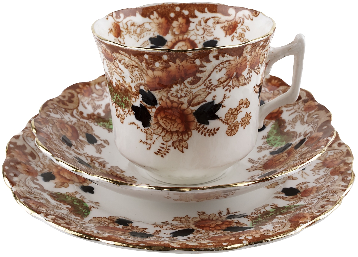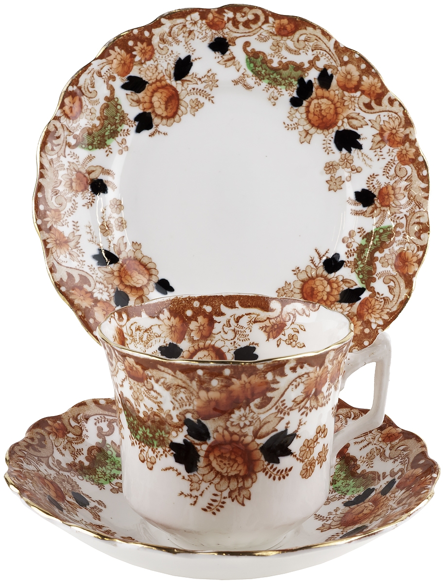 Чайное трио антикварное "Торжество Имари". Фарфор. Wellington china, Великобритания, первая половина 20-го века