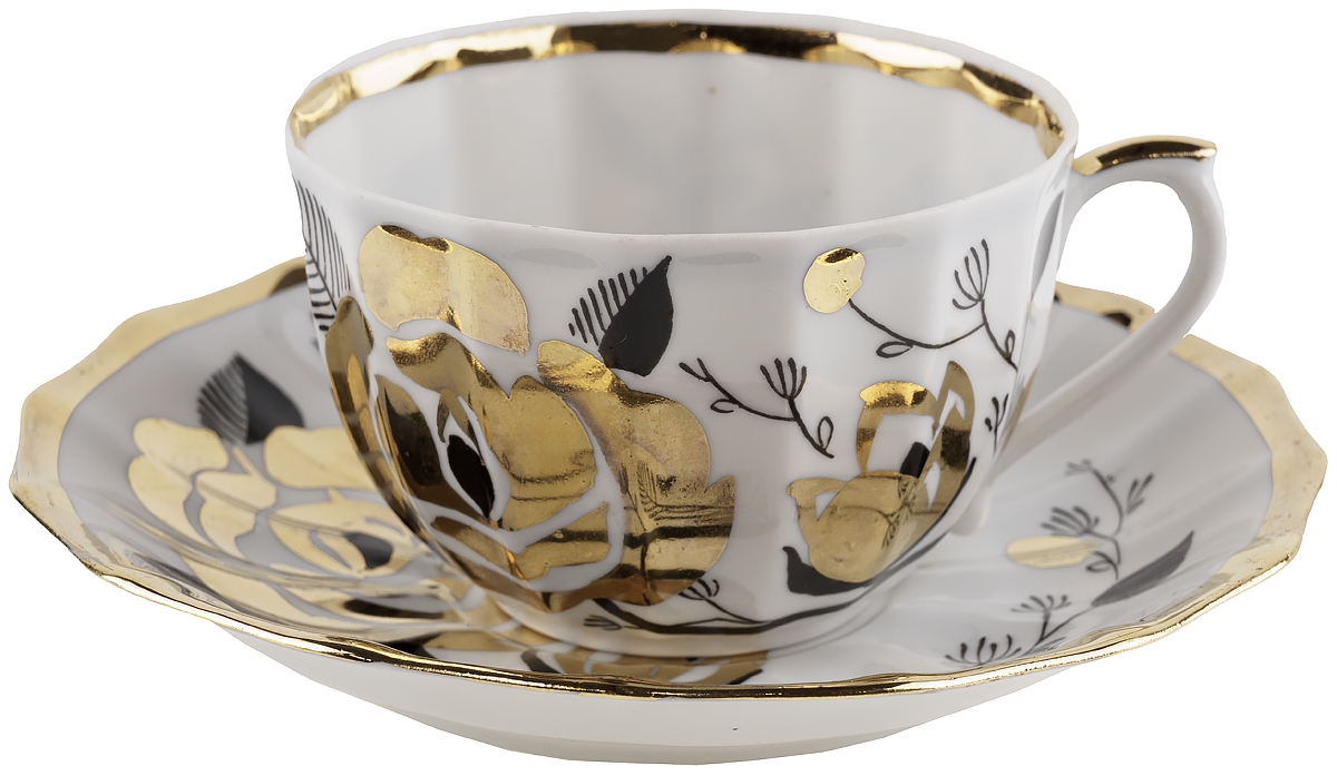 Изящная винтажная чайная пара "Золотая роза" из тонкого костяного фарфора. Форма "Ампир".