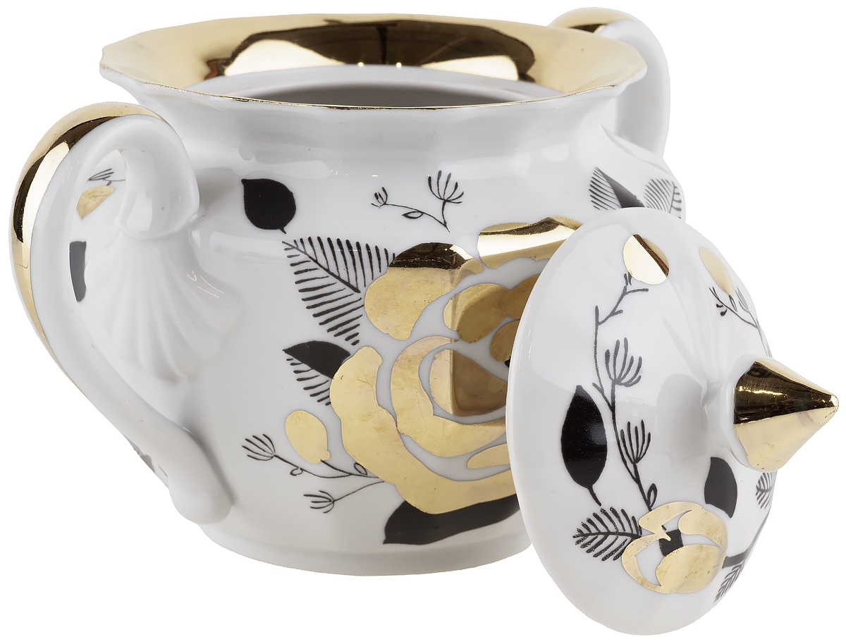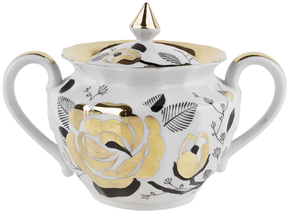Сахарница с крышкой "Золотая роза", фарфор, винтаж, Вербилки, СССР, 1965 - 1991 гг.